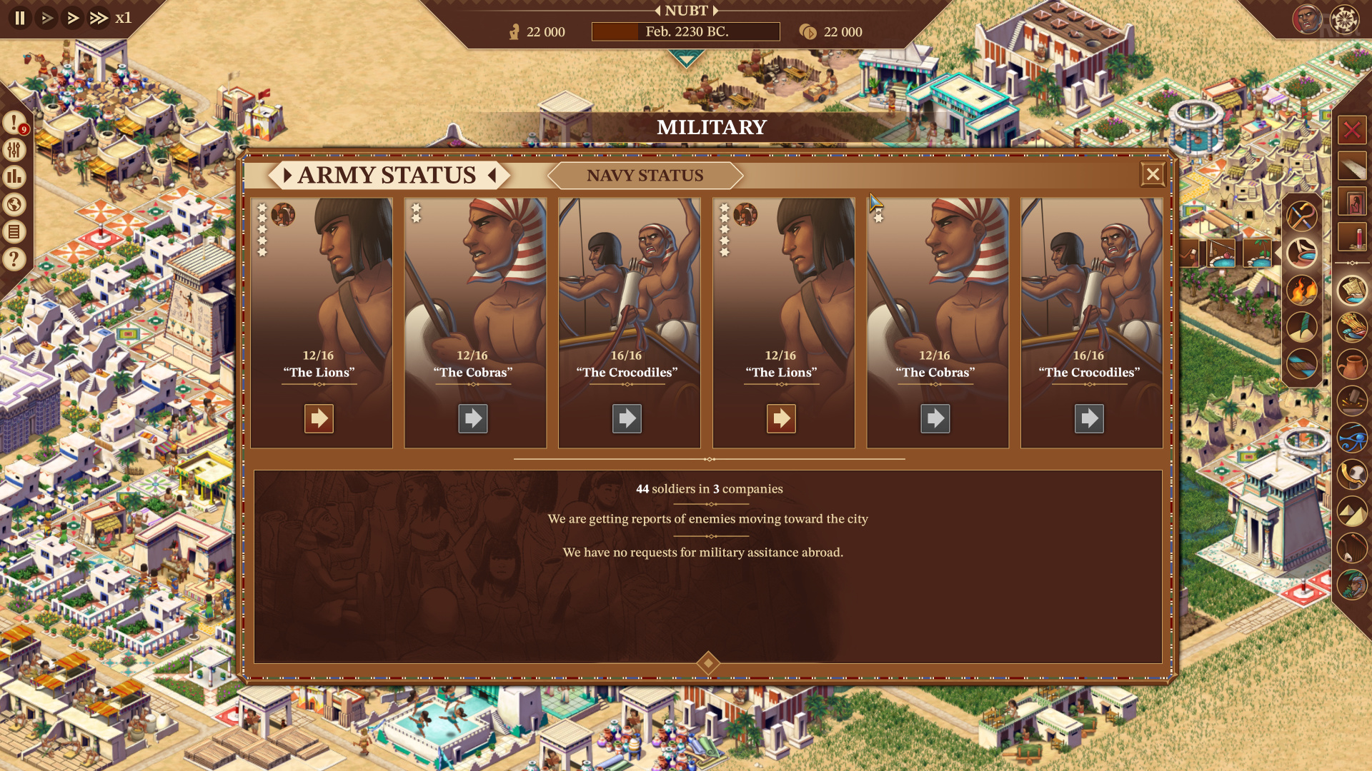 Ensure your city is prosperous enough to deal with economic or political crises, or even plundering by enemies. A Pharaoh takes care of its people and does whatever it can to earn the favour of the gods.