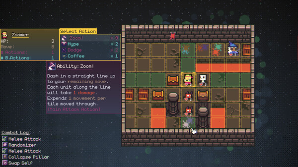 Rerun is a mini turn-based tactics roguelike where you're lost in an ever-changing, branching dungeon, which is also your skill tree. Harness your questionable abilities and curious upgrades in order to keep your adventurers alive and escape the dungeon!