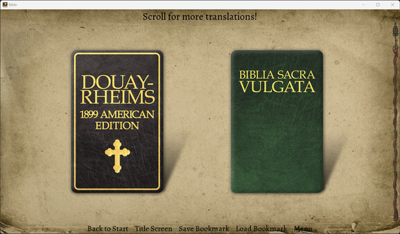 A digital recreation of The Bible in Kinetic Novel form! Read through and save passages in any order with an original soundtrack, or listen through the greatest story ever told in audiobook form. Featuring an extensive Trivia section to find out how well you really know the stories of Old and New.