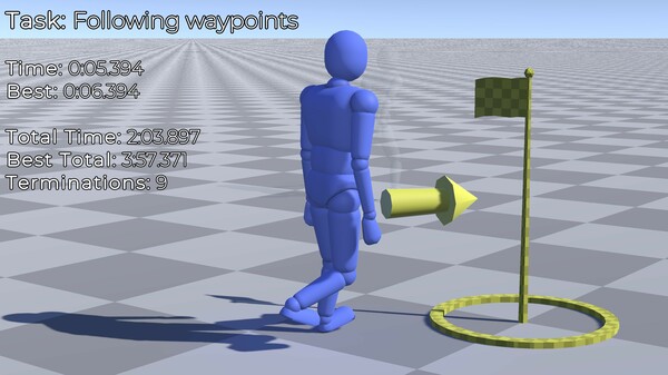 You are a machine learning model tasked with driving an active ragdoll in a computer physics simulation. Take manual control of your feet to retain balance, walk, navigate obstacles, and perform various tasks. A challenging game partially inspired by Bennett Foddy's work.