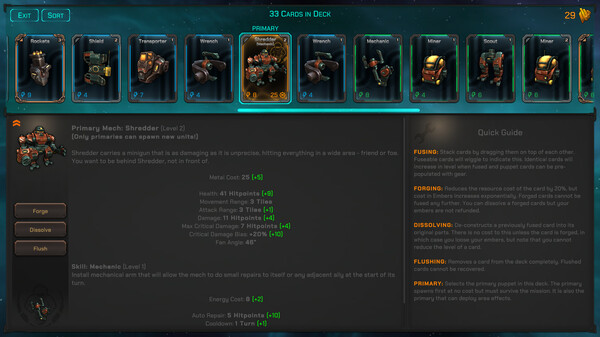 Turn based strategy game with resource management and a deck building mechanic