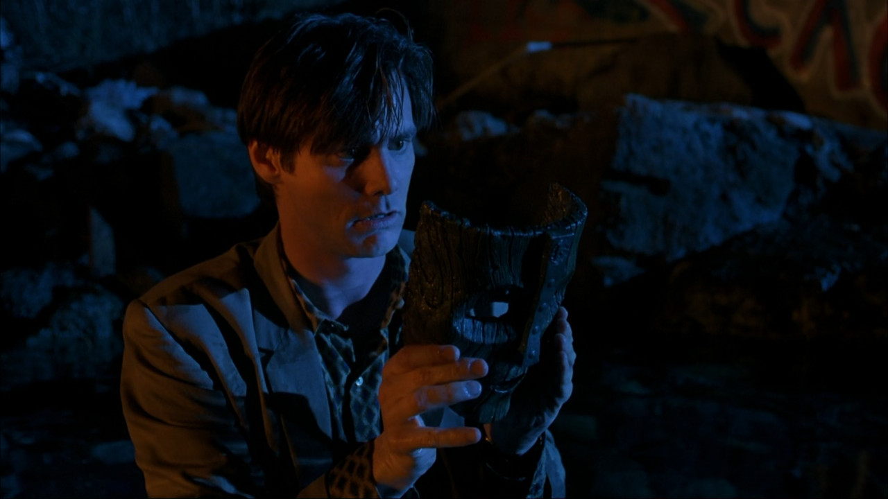 When timid bank clerk Stanley Ipkiss (Jim Carrey) discovers a magical mask containing the spirit of the Norse god Loki, his entire life changes. While wearing the mask, Ipkiss becomes a supernatural playboy exuding charm and confidence which allows him to catch the eye of local nightclub singer Tina Carlyle (Cameron Diaz). Unfortunately, under the mask's influence, Ipkiss also robs a bank, which angers junior crime lord Dorian Tyrell (Peter Greene), whose goons get blamed for the heist.