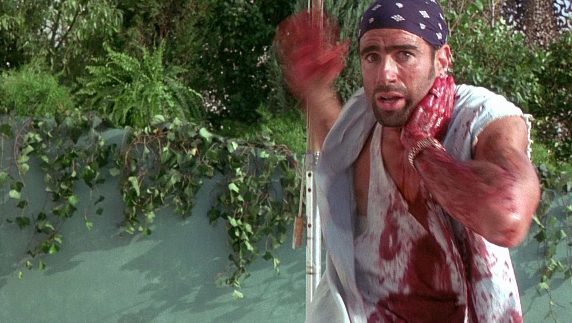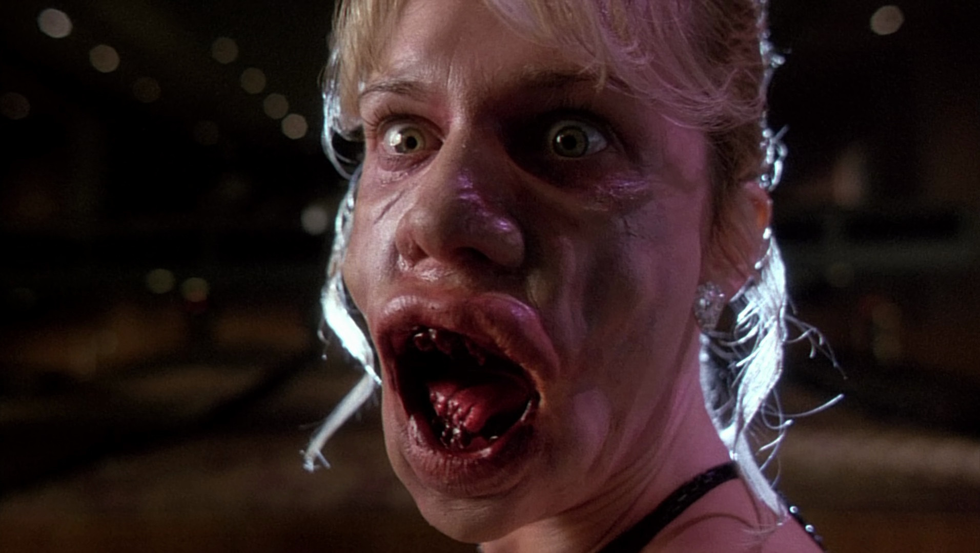 Note : We're all adherents of the Church of Yuzna here at HeVKwarters, and although this is a lesser entry in the artists oeuvre, it still passes the oral exam, especially if you're not fond of dentists. Mixing Yuzna's tradmark gross-out humor with the format of a pretty typical slasher, this Corbin Bernsen starrer is simple and fast-paced, not at all like pulling teeth, with plenty of gory effects and wonky "I'm going crazy" vision effects. It's not subtle or nuanced, but it's plenty entertaining, and Bernsen seems to be having a ball with the over the top role. Oh, and Ken Foree shows up as one of the cops, and a then-unknown Mark Ruffalo has a tiny role.
