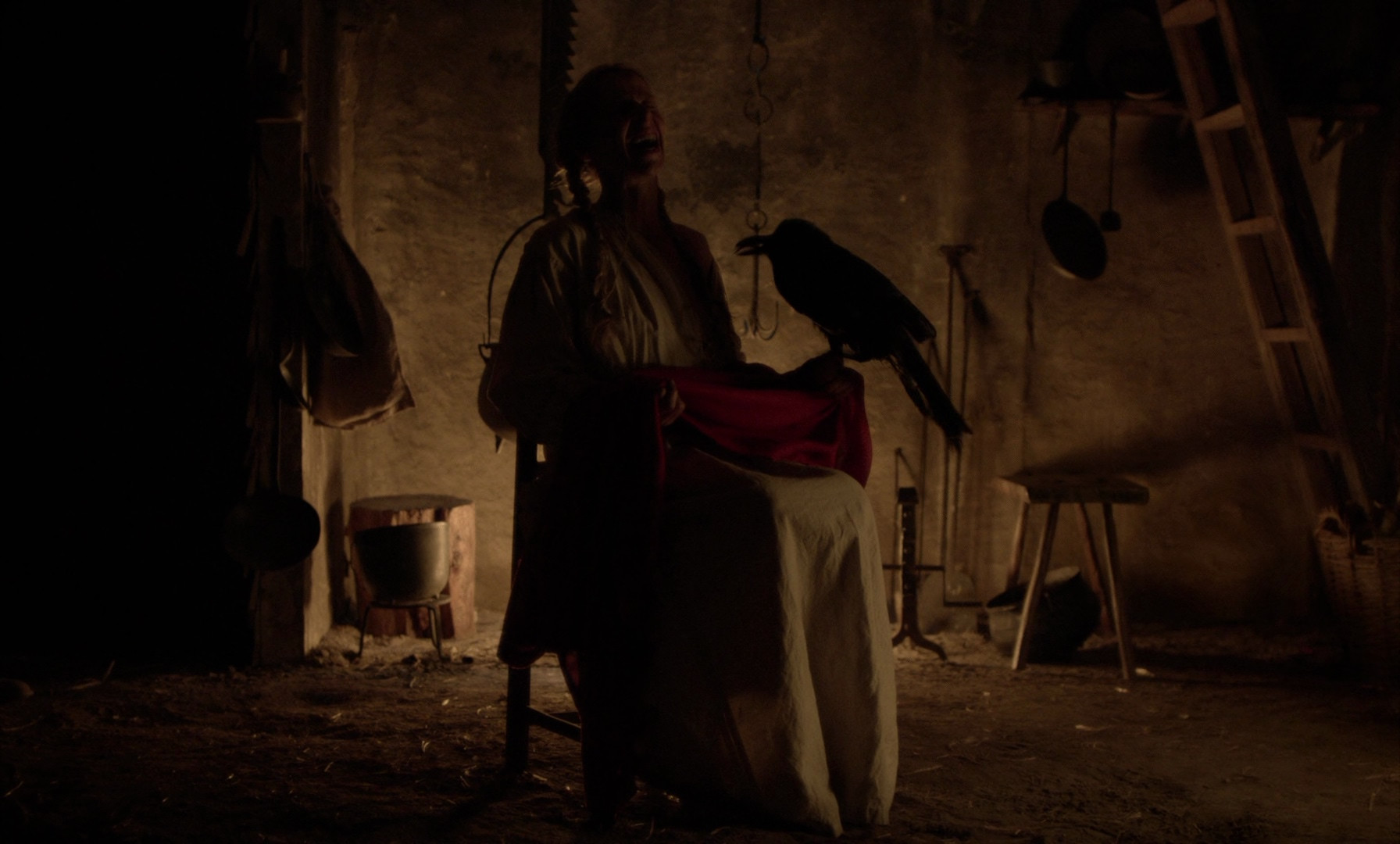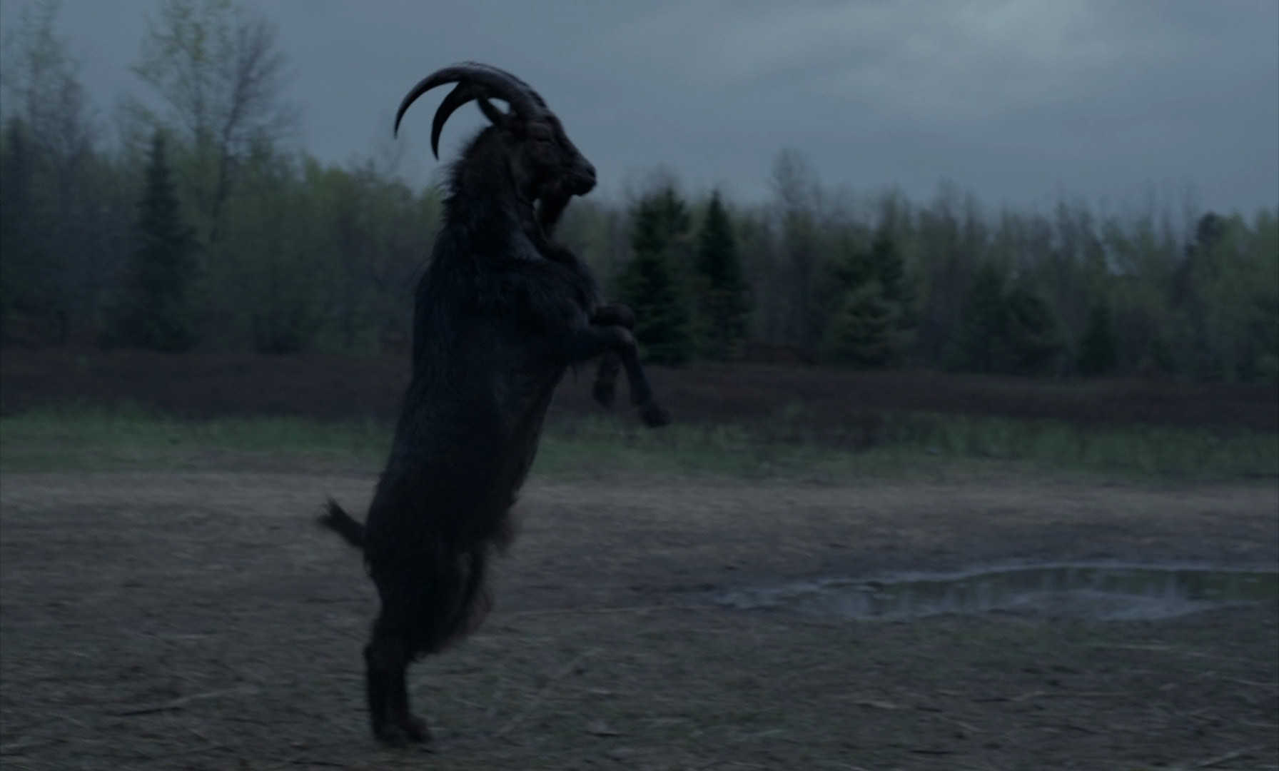 William and his family are too puritan even for the puritans, and so they're banished from their native settlement. They build a farm in a clearing near a dark forest, and get on with puritan pastimes such as having a fifth child and walking outside in the freezing rain. When infant Samuel mysteriously disappears while in teenaged daughter Thomasin's care, mother Katherine goes into a tailspin, preteen son Caleb wonders if his unbaptized brother went to heaven, and young twins Mercy and Jonas start spending an unhealthy amount of time with the farm's ominous goat, Black Phillip, who they claim talks to them. Things get worse when Caleb is seduced by a mysterious young woman in the woods and comes back home deathly ill, and Katherine blames Thomasin for everything. As you might suspect, this story doesn't really end very well for anyone, as often happens to people in cabins in woods.