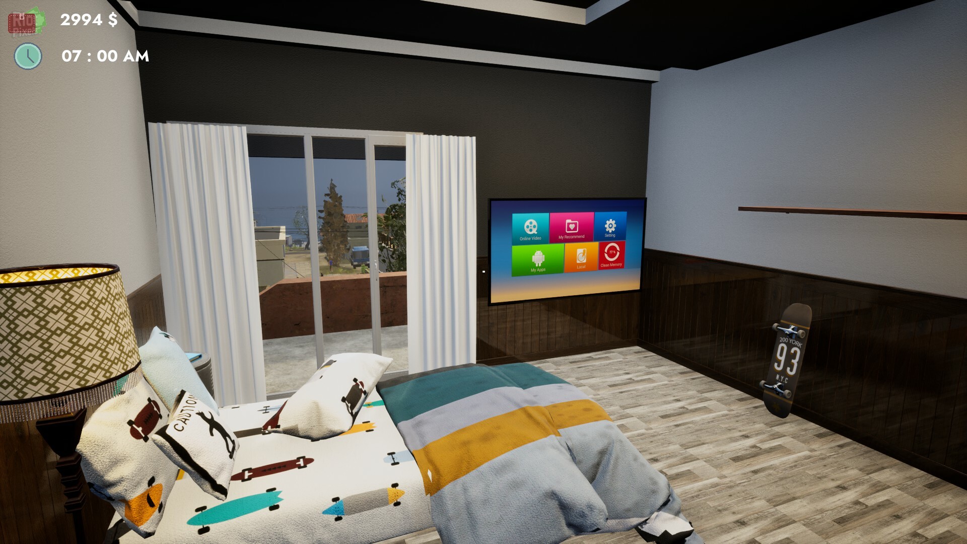 in order to make this experience much more fun, you can purchase a TV and a chair in the game , Sit back , Relax and watch any online video while working !