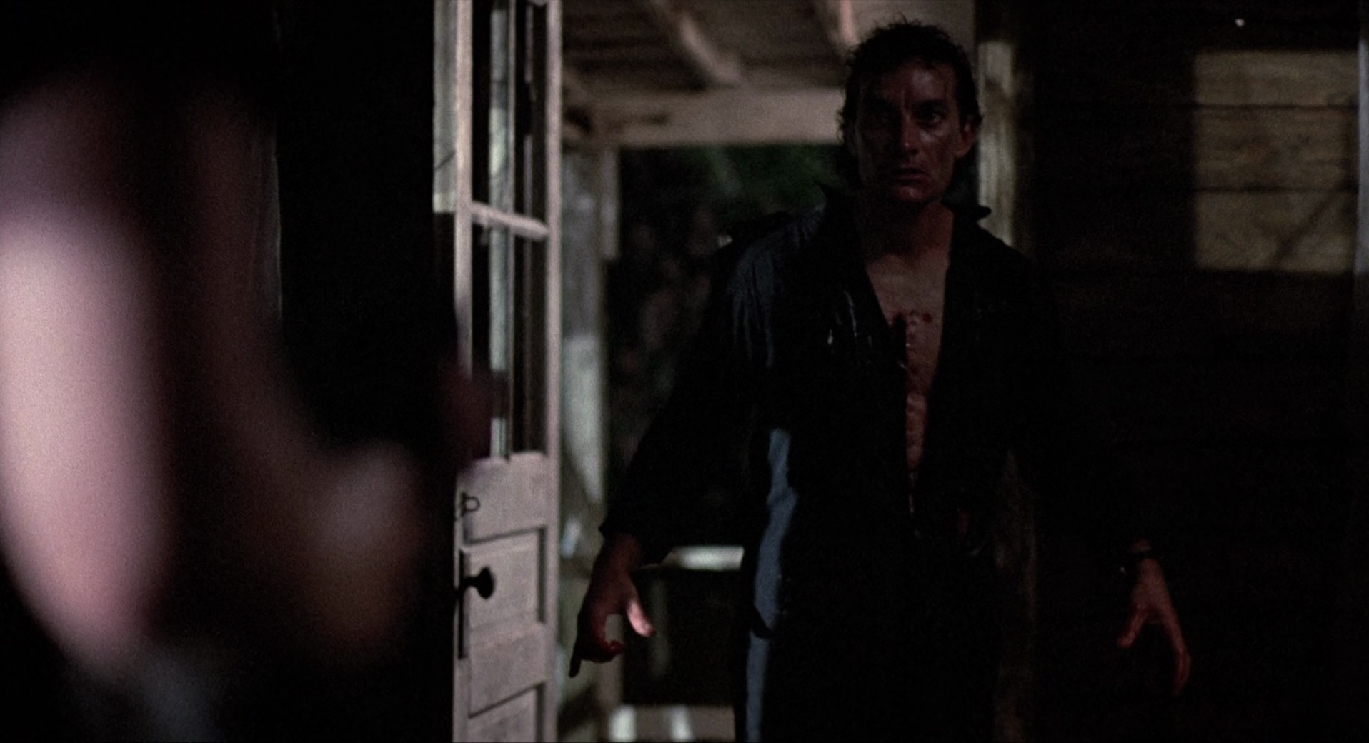 Note : Here's a little known oddity, an 80s super-independent horror film that's a decidedly mixed bag, with a bare-bones story, performances that range from over the top to just hysterically bad, and kind of a slow pace, but it's also pretty tight and suspensful, has creepy creatures, very nice cinematography, and some good gore. It's also notable since several of the people whose first feature this was went on to have long careers, DP Peter Deming shot Evil Dead II, Scream 2, 3, & 4, Lost Highway, Mulholland Drive, Drag Me To Hell, and The Cabin in the Woods, while producer Cami Winikoff later worked on films in the Return of the Living Dead, Leprechaun, Warlock and The Dentist series. Anyway, this is a good one if you want a short, nasty little supernatural stalk-and-kill film that doesn't outstay its welcome, and also features the only zombie with huge nightvision goggles I've ever seen.