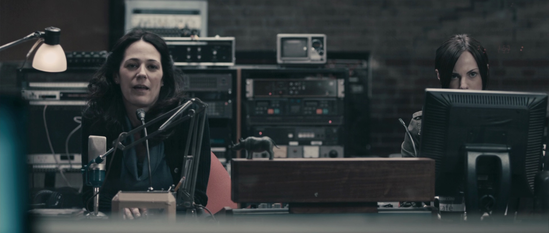 Grant Mazzy is a radio announcer in the small town of Pontypool, Ontario, who's driving to work when he's approached by a weird woman who only repeats the word "blood" before disappearing into the snowy night. Once at the station, he gets and announces news of a riot at a doctor's office that's claimed several lives, and then several other reports of random violence and erratic behavior come in. A transmission in French tells the three people holed up at the radio station to stop using English, and to avoid certain words and kinds of discourse, and soon after, the station is attacked by a mob. Things get even stranger as the actual reason for what's going on is gradually revealed.