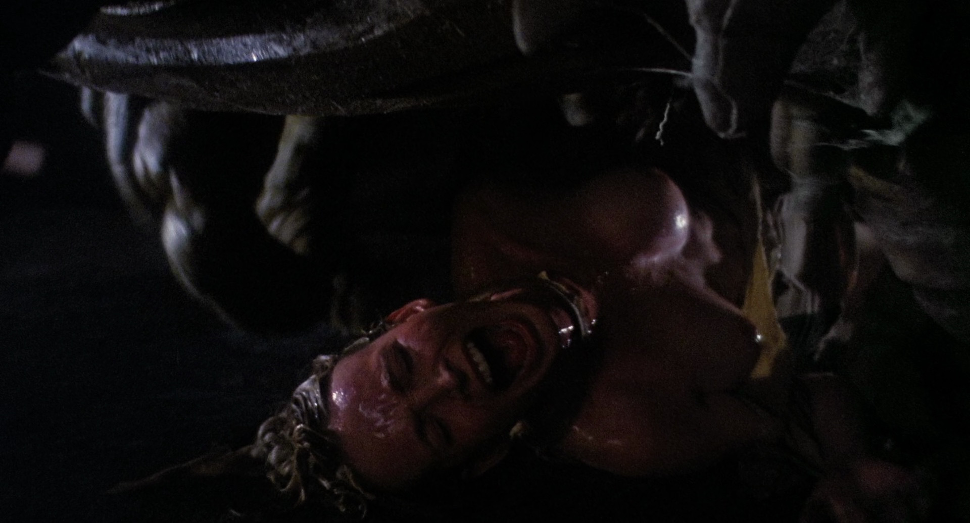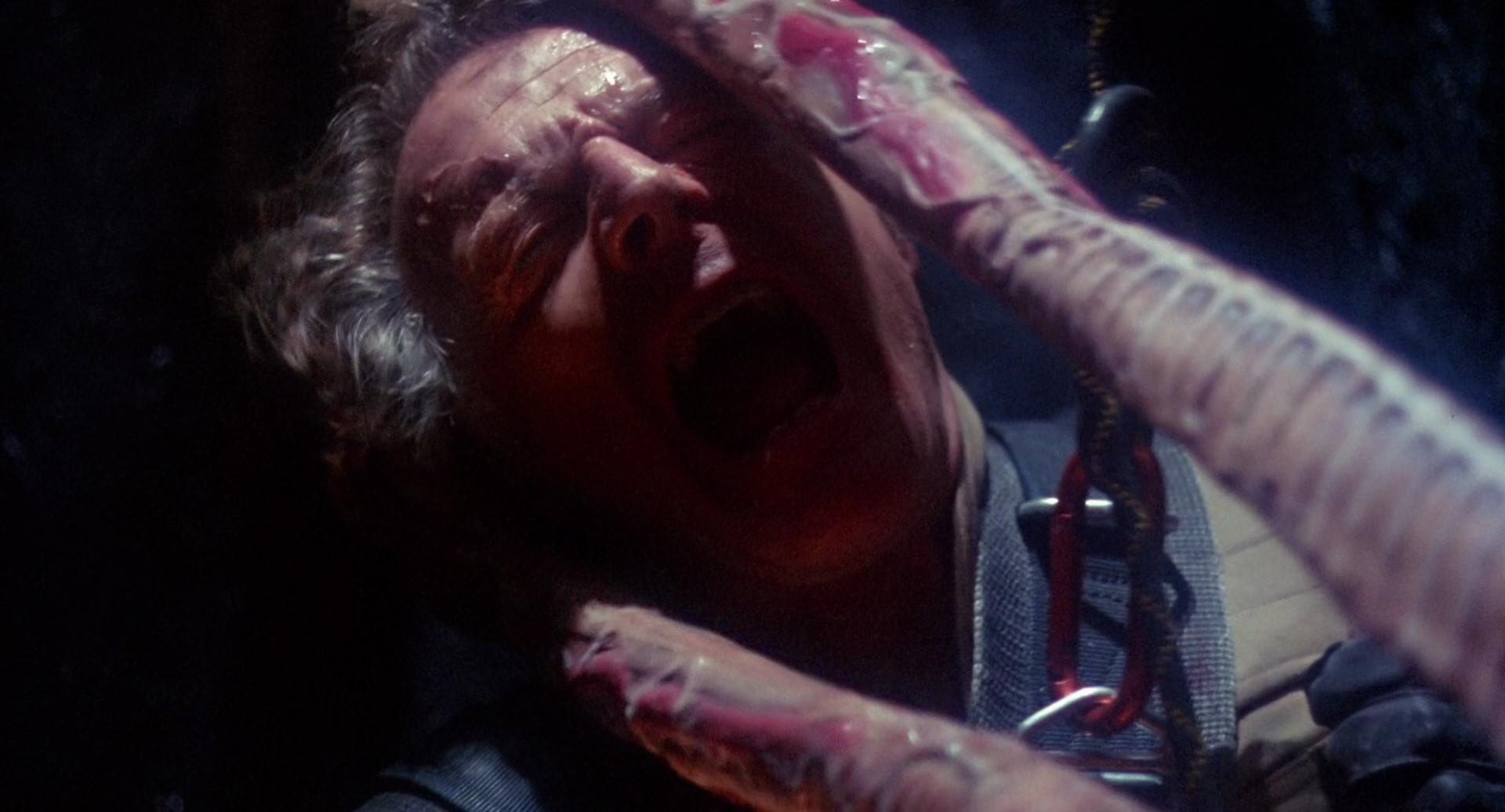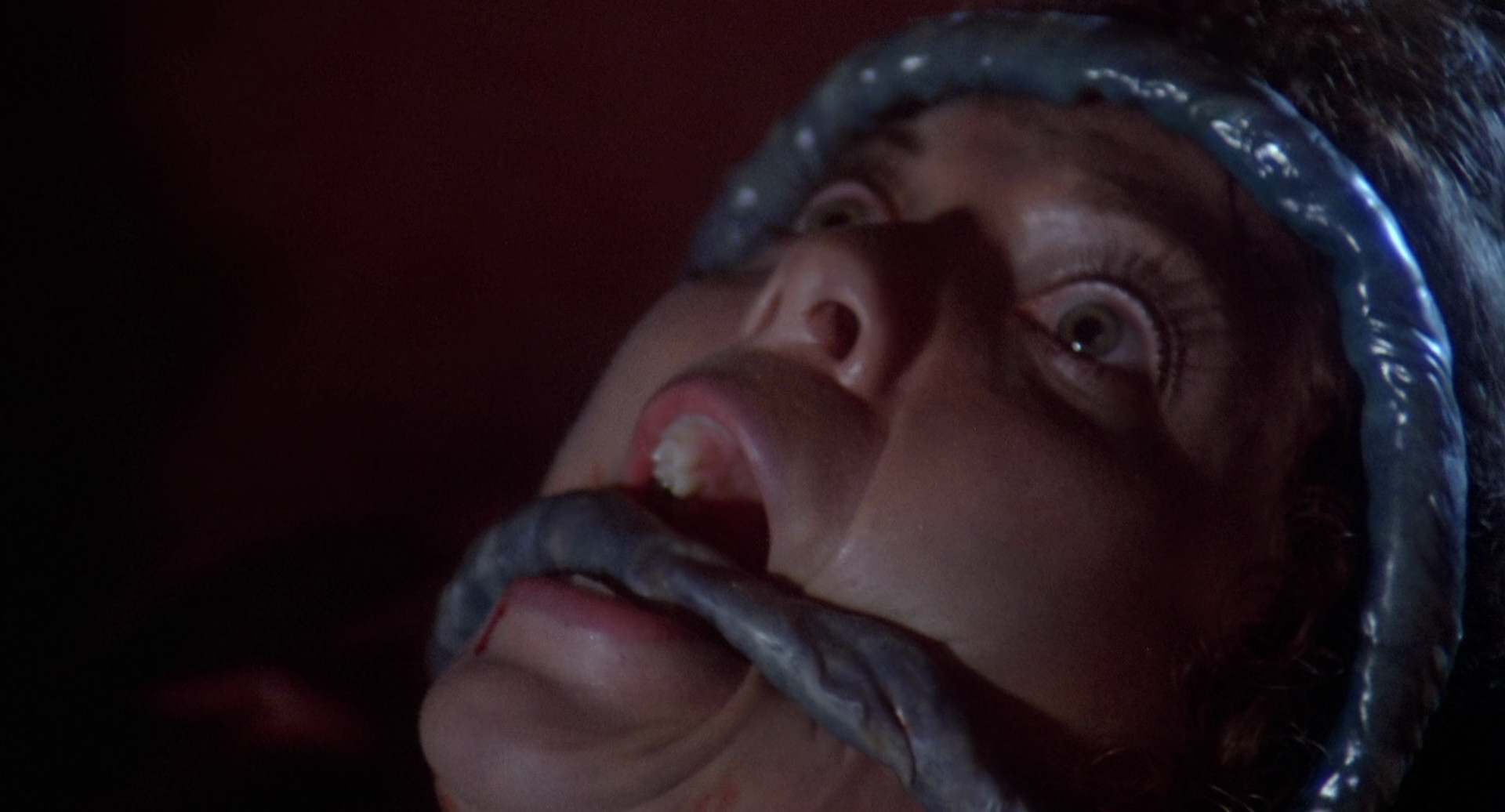 This is a very decent looking remaster, maybe slightly more denoised than would have been ideal in some sequences, but not much to complain about. Stereo track sounds good, commentary track has worm rape victim Taaffe O'Connell and various crew, including, incredibly, our old friend David DeCoteau, who was a production assistant on this.