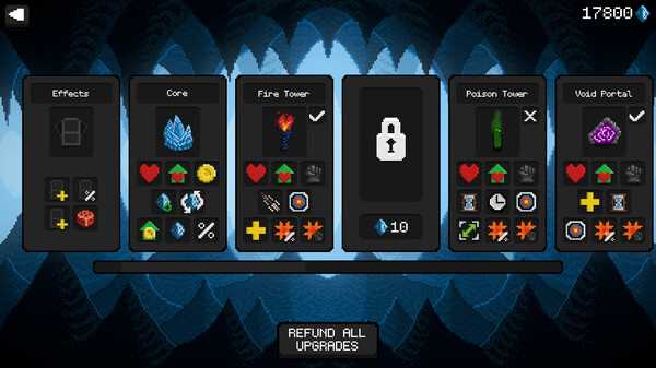 Core Defence is a tower defence game with roguelike elements. Build towers to defend the Core, unlock new ones and upgrade them, choose from a variety of powerful effects and defeat bosses.