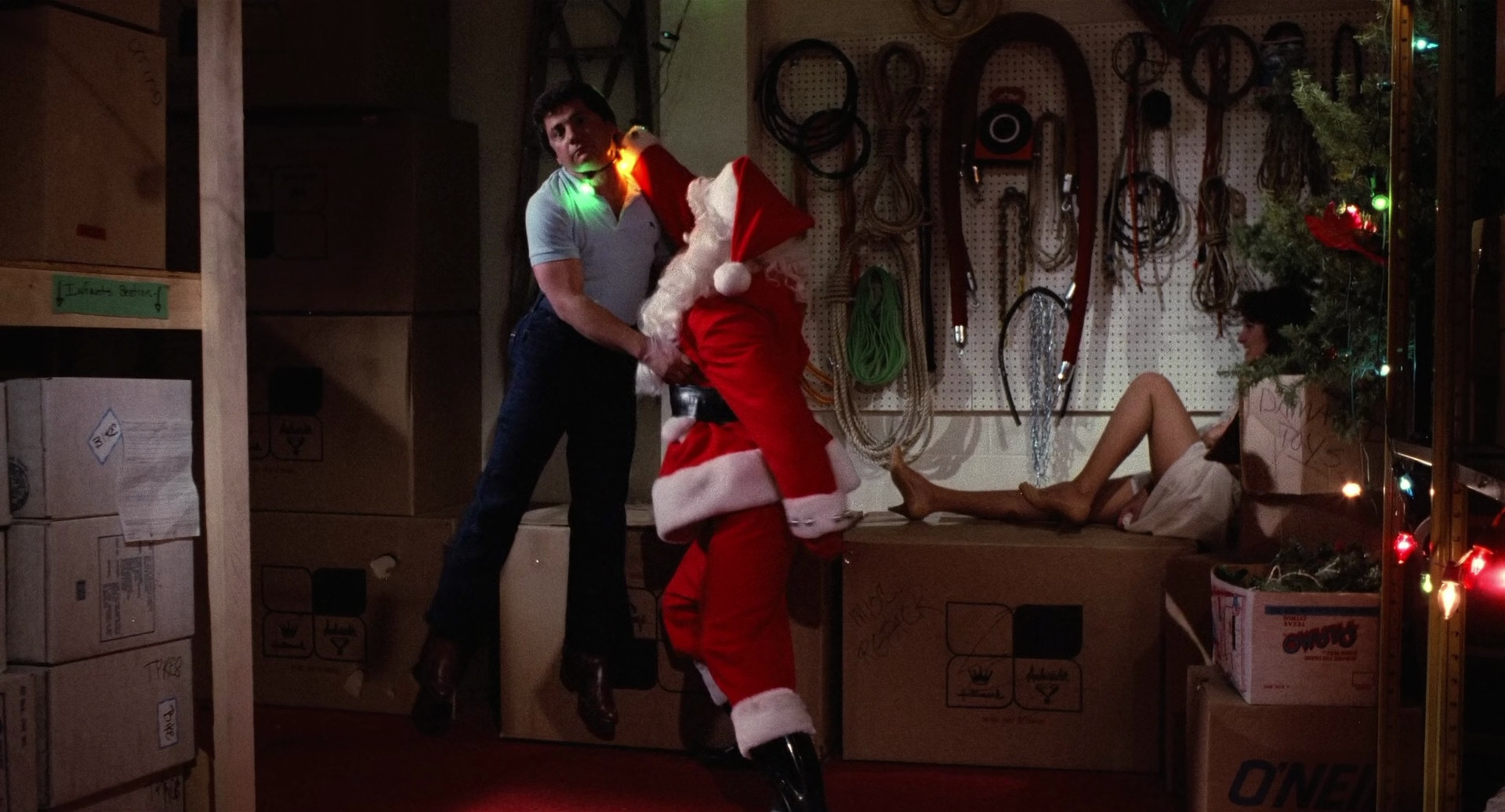 5 year old Billy, his baby brother, and his parents are on their way home from a visit with Billy's seemingly-catatonic grandfather, who snapped out of it once they were alone to warn Billy about Santa, and now a man in a Santa suit is flagging them down on a remote road at night. Oh no! It's a murderer and rapist dressed as Santa, and Billy ends up traumatized in an orphanage along with his brother. As he grows up resisting Christmas joy, he becomes a big, strong young man, and when he's hired as an assistant in a toy store, all seems well, until the owner pressures him into putting on a Santa suit...