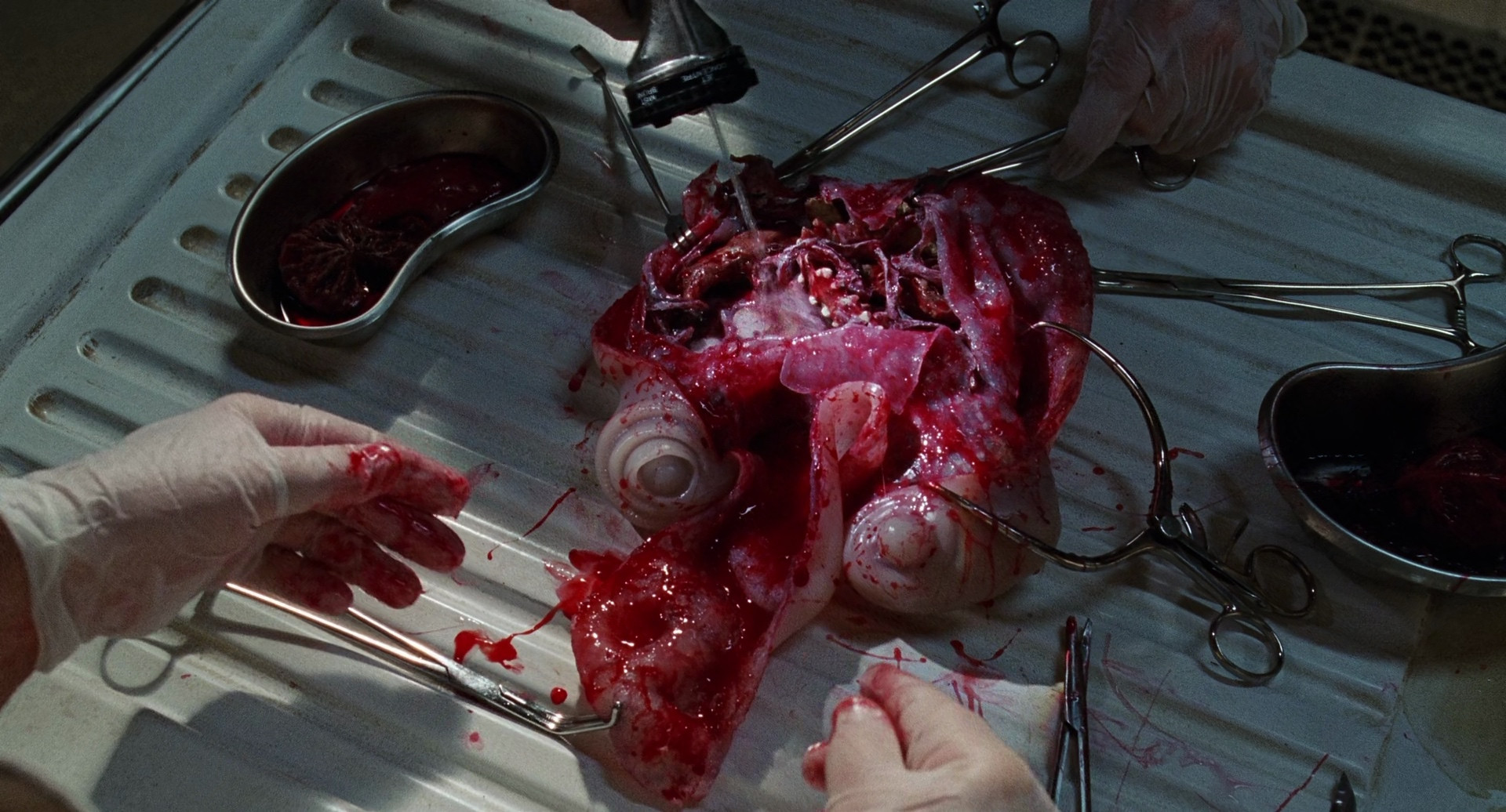 eXistenZ (1999), directed by David Cronenberg, Vinegar Syndrome 4k remaster, encoded in 10 bit HEVC with AAC sound, including 5.1 remaster, six (!) commentary tracks, isolated score and effects, and subtitles in English, German, and Romanian.