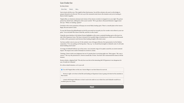 Lead the first settlement on Jupiter's frozen moon, Europa! What alien life lurks beneath the ice? Who is sabotaging your mission? Who can you trust?