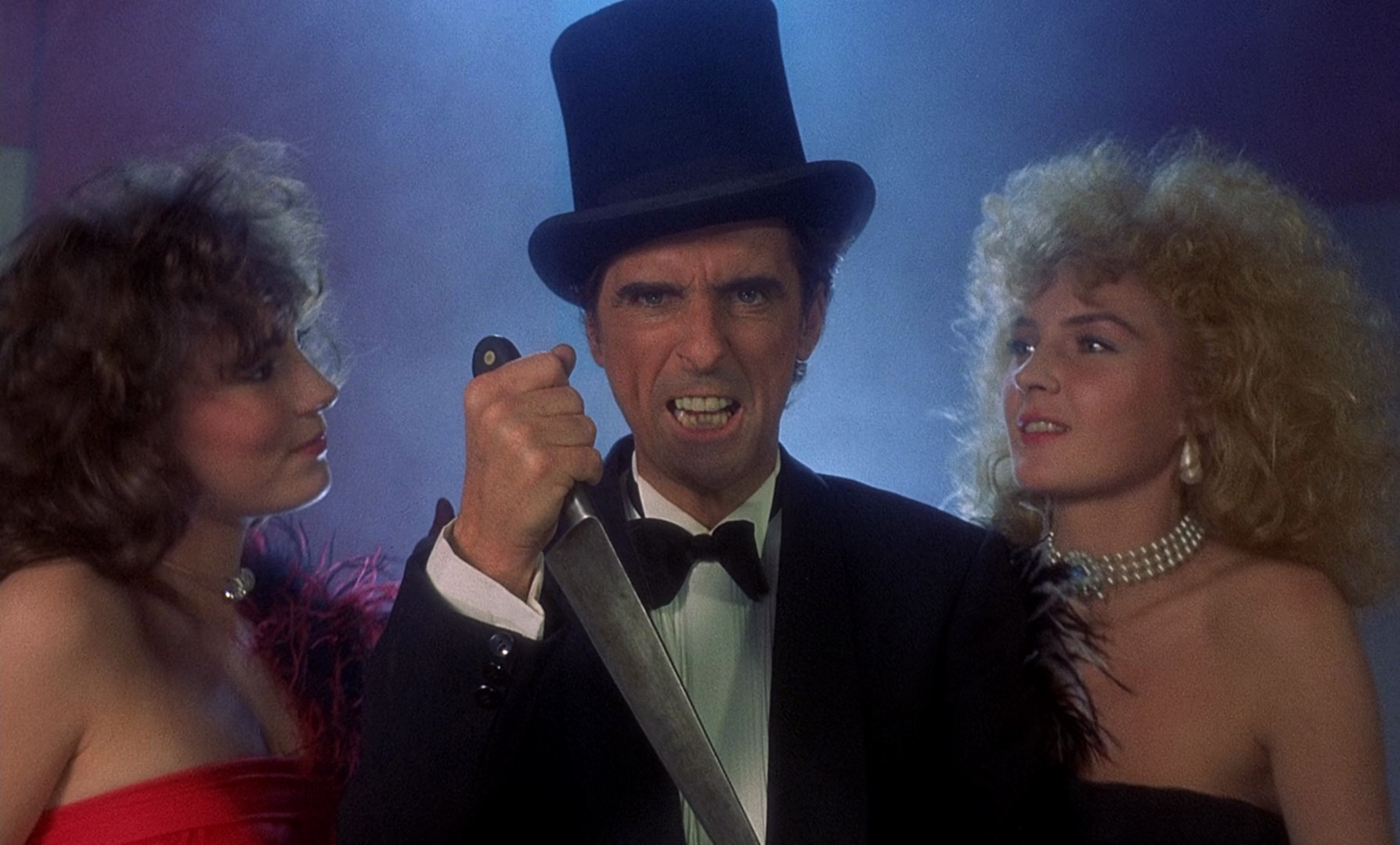 Note : Here's another film I was made aware of by Bad Movie Bible's excellent "Top 10 Best Worst Heavy Metal Horror Movies", and it's a hell of a combination on paper at least. It's a Spanish production (ostensibly direct to video, although it's 1.66:1, and eventually got a theatrical release), by the Italian director behind Troll 2, starring Alice Cooper, shot in a mix of languages but dubbed to English (even Cooper was dubbed by someone else). Cooper plays "the hottest rock star in the world", and although the film features two music video shoots, he spends most of his time looking like a dork in a sweater over a button down shirt. Oh, and there are werewolves, but the effects are laughably bad, possibly because the main monster puppet broke during the first day of filming, and everything is hidden by inordinate use of smoke machines. Ironically, this werewolf film has fewer howlers than Troll 2, but it's still worth watching for fans of incompetent cinema.