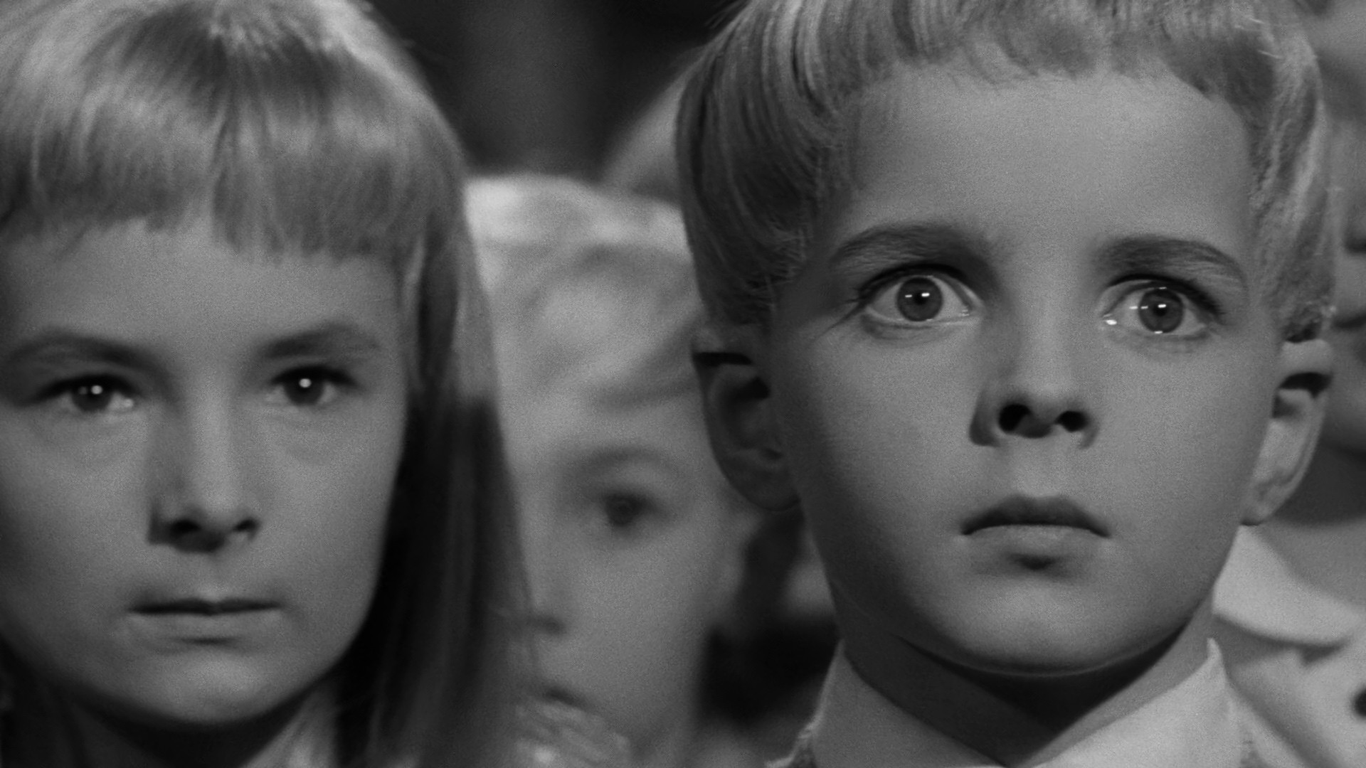 In the English village of Midwich, all inhabitants suddenly fall unconscious at the same time, and the same thing happens to anyone who enters the village. The military quarantines the village, and carries out experiments confirming that anyone who approaches beyond a certain point loses consciousness, including an unlucky pilot told to fly over the village, as soon as he flies below five thousand feet. After a few hours, everyone regains consciousness, apparently unaffected, but soon after, it's discovered that all the village's women of childbearing age are pregnant, sparking accusations of cheating, however, the pregnancies proceed unnaturally quickly, all the children are born on the exact same day, and all have unusual physical features, and mature faster than usual. When it's discovered the children, who act more like adults with no emotional affect, also have a telepathic bond, a sort of group mind, the government investigates, and discovers the children may be a grave threat.