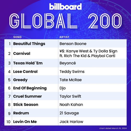 Preview: https://www.billboard.com/charts/billboard-global-200/2024-03-16/