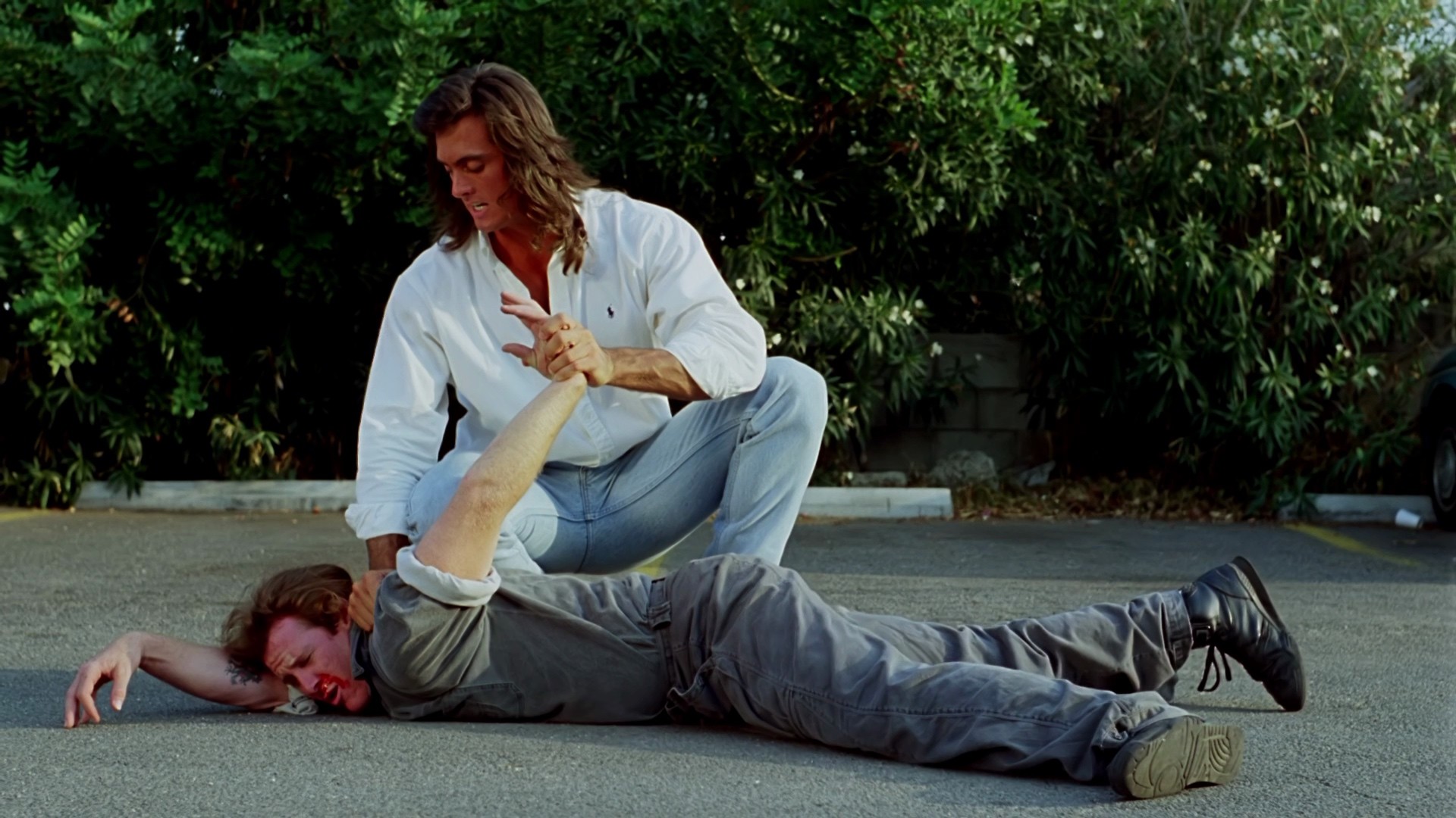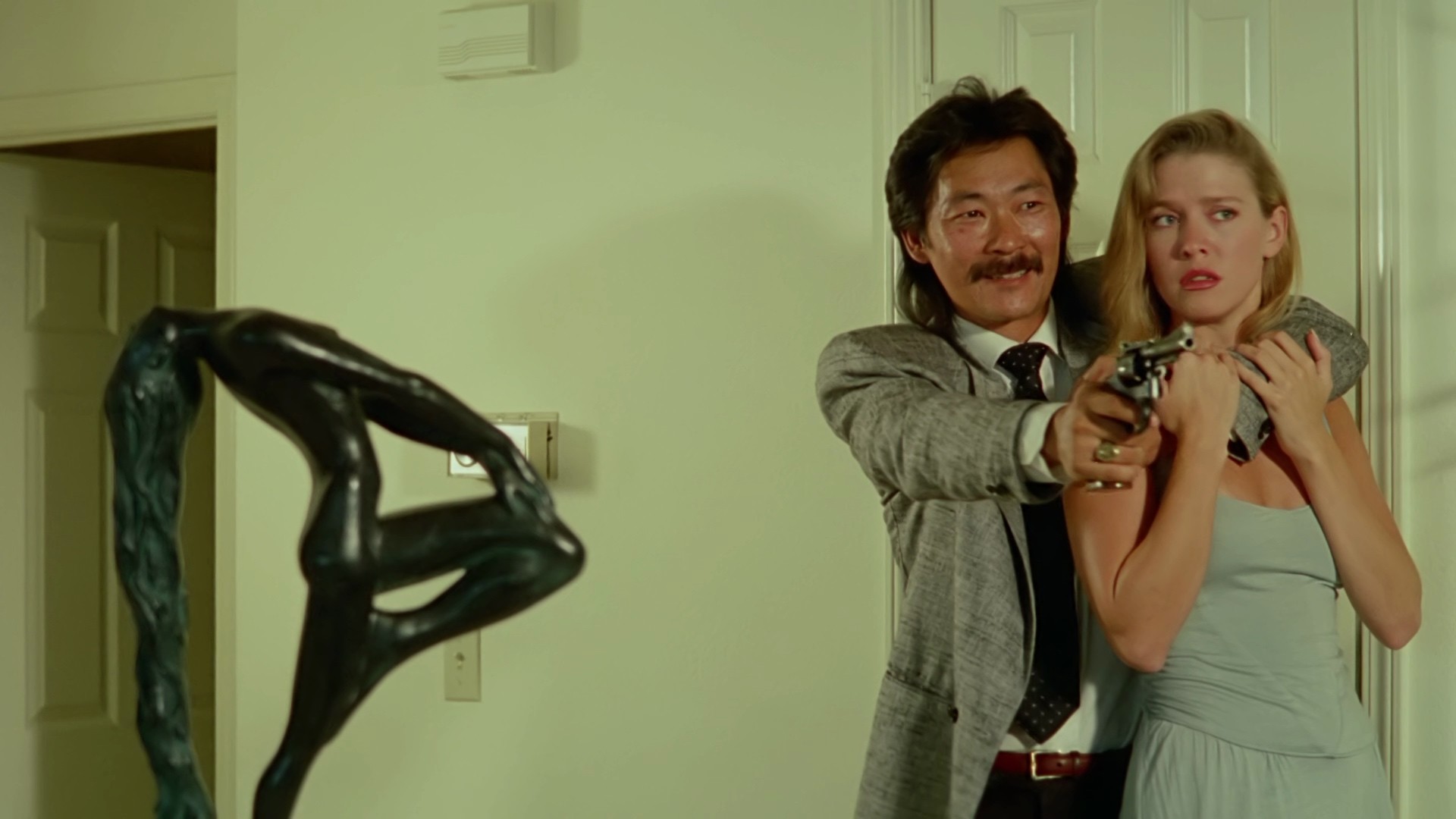 When a renegade Japanese gang known as "The Katana" take control of Los Angeles' cocaine trade (considering the time period, no doubt north of 50% of US GDP), the LAPD, incompetent as usual, calls in a "Samurai Cop" from San Diego, who's been trained by Japanese masters. He's not particularly Samurai-y, but he sets about killing his way through the Japanese gangs, seducing the gang leaders' girlfriends, and making a lot of strange faces, all the while showing off his magnificent mane of hair and his tiny swimwear. It ends in a samurai vs. samurai showdown with Robert Z'Dar's Yamashita.