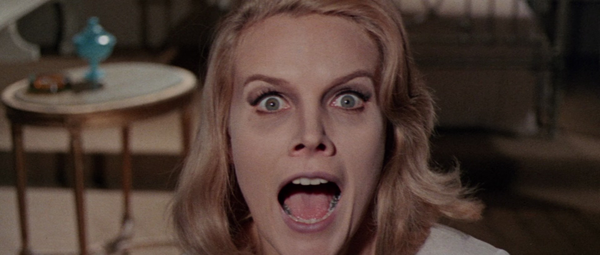 This is honestly a pretty poor transfer, fuzzy and with insipid color, although it comes alive a bit more when the psychedelic lighting effects kick in. The two mono tracks sound acceptable, and the commentary track with Alexandra Heller-Nicholas is good as usual. I had trouble converting the subtitles to VobSub, so I decided the easiest solution would be to OCR and correct them, enjoy a little blast from the HeVK past.