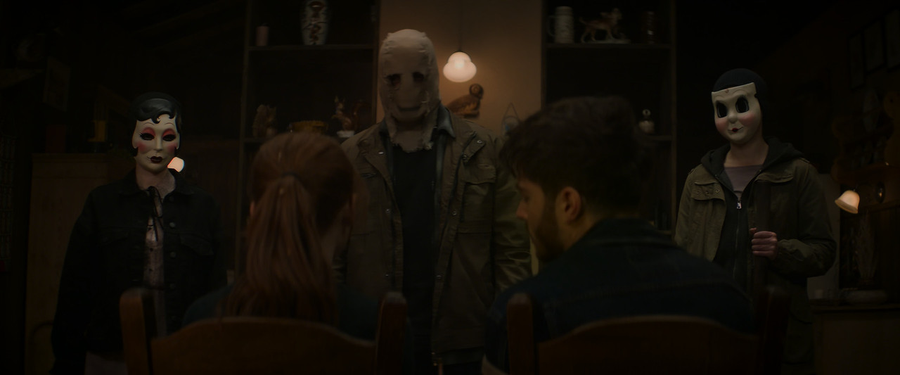 After their car breaks down, a couple driving cross-country to begin a new life in the Pacific Northwest is forced to spend the night in a secluded rental, where they are terrorized from dusk till dawn by three masked strangers.