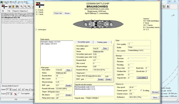 Rule the Waves III is a simulation of naval ship design and construction, fleet management and naval warfare from 1890 to 1970.