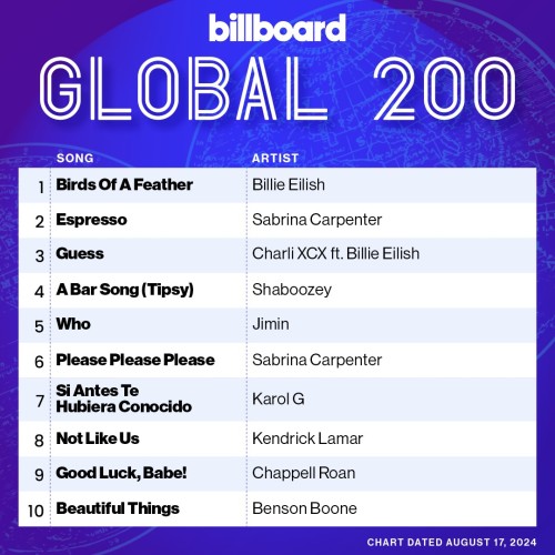 Preview: https://www.billboard.com/charts/billboard-global-200/2024-08-17/