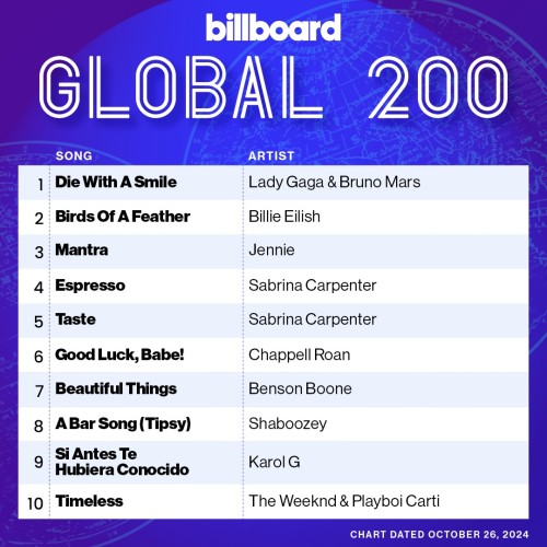 Preview: https://www.billboard.com/charts/billboard-global-200/2024-10-26/