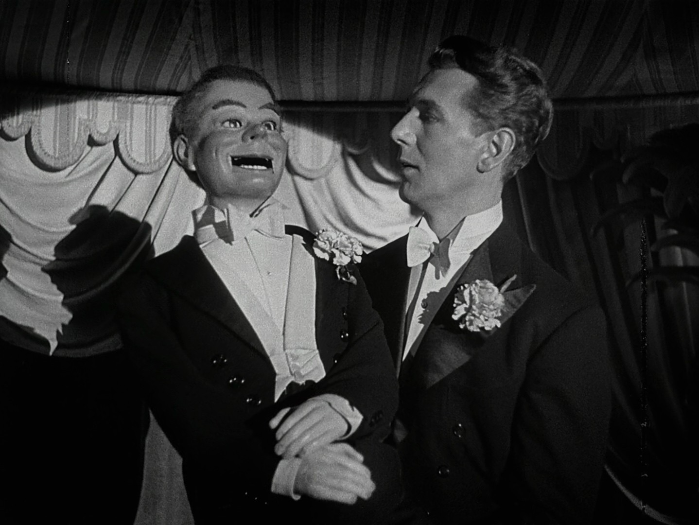 Dead of Night (1945), directed by Alberto Cavalcanti, Charles Crichton, Basil Dearden, and Robert Hamer, Kino Lorber 4k remaster, encoded in 10 bit HEVC with AAC sound, including original theatrical dual mono, commentary track, and English subtitles.