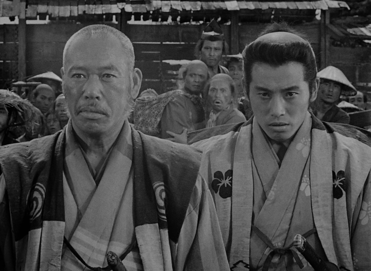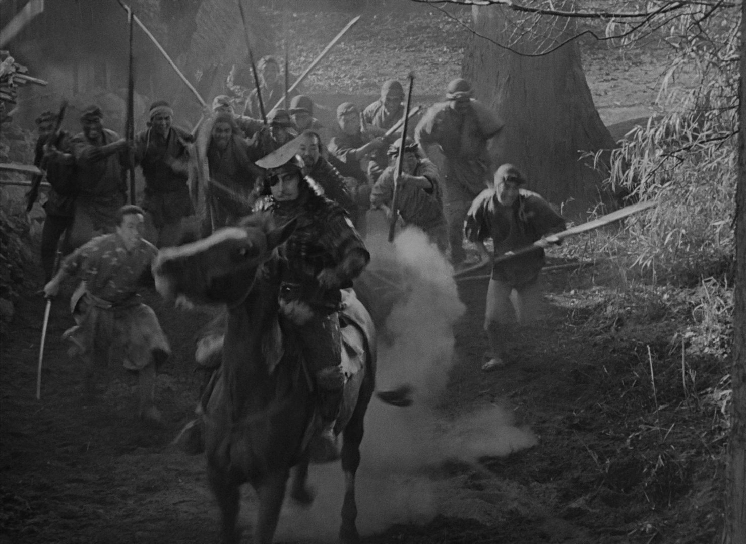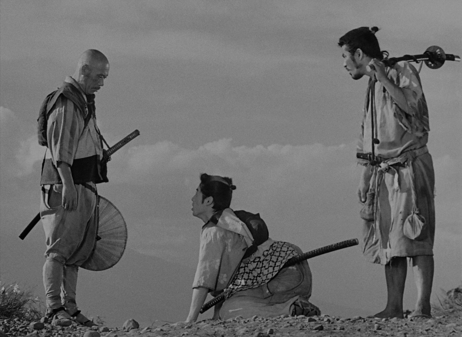 samurai, and so it goes, a quest to find a group of warriors to help, starting with the team leader, Kambei, then quickly adding Katsushirō, a young samurai who wants to be Kambei's apprentice, then Shichirōji, Gorobei, Heihachi, and Kyūzō. Finally, they're joined by Kikuchiyo, an eccentric who may not actually be a samurai, but who proves so intent on joining they simply let him tag along. The samurai arrive in the village, and they start training the villagers to fight alongside them against the bandits' superior numbers. Katsushirō begins a relationship with Shino, a farmer's daughter whose father disguises her as a boy to keep her safe from the bandits, and the samurai are first angered when the villagers bring them armor and weapons they've acquired by killing samurai, but Kikuchiyo scolds them, telling them samurai have caused the people much suffering. As they come upon a group of bandit scouts, of which one makes it back to the bandit camp, the samurai's hand is forced and they decide on a preemptive strike, which starts a series of battles which will pit them and the villagers against the mounted bandits, some of whom have muskets, and seem vastly superior...