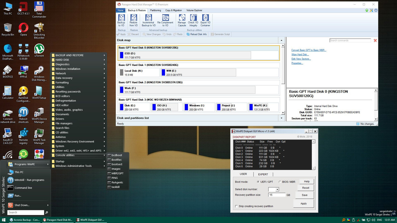 Bootable disk Windows 11, 10 and 8 PE – for maintenance of computers, hard disks and partitions, backup and restore disks and partitions, computer diagnostics, data recovery, Windows installation.