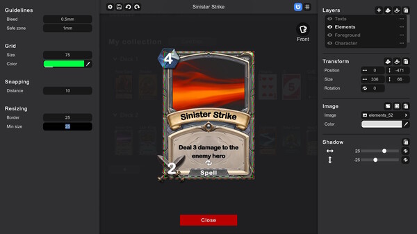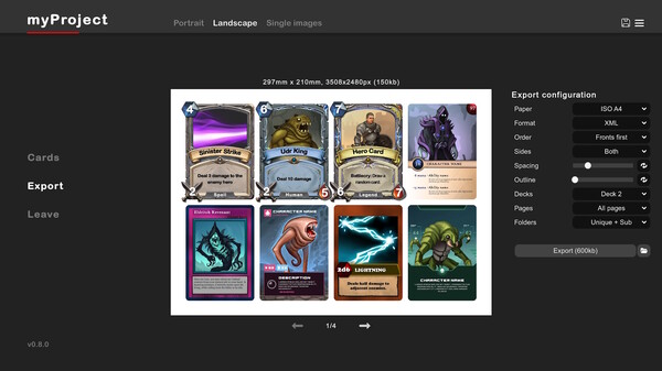 Create stunning cards without the need for drawing skills. Import your own images, or choose from the extensive built-in library. Seamlessly manage your cards and export them as image files for digital use or printing your own physical cards.