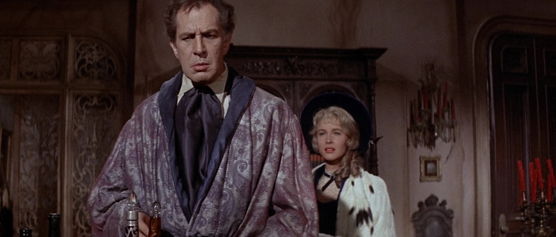 Note : There's been a while since we did some of the Corman-Poe cycle, and here's the only film I've not uploaded yet, an anthology of three shorter stories, all starring Vincent Price, and all tending more towards the horror comedy. The first is an adaptation of "Morella", with Maggie Pierce, Leona Gage, and Ed Cobb, the second is a combination of "The Black Cat" and "The Cask of Amontillado" (which makes sense, since both involve immurement), with Peter Lorre, Joyce Jameson, Lennie Weinrib, and Wally Campo, and the third is a pretty straightforward adaptation of "The Facts in the Case of M. Valdemar, with Basil Rathbone, Debra Paget, and David Frankham. It's lighter fare, but pretty good, well worth a watch if you're a fan, especially because Price really hams it up here.
