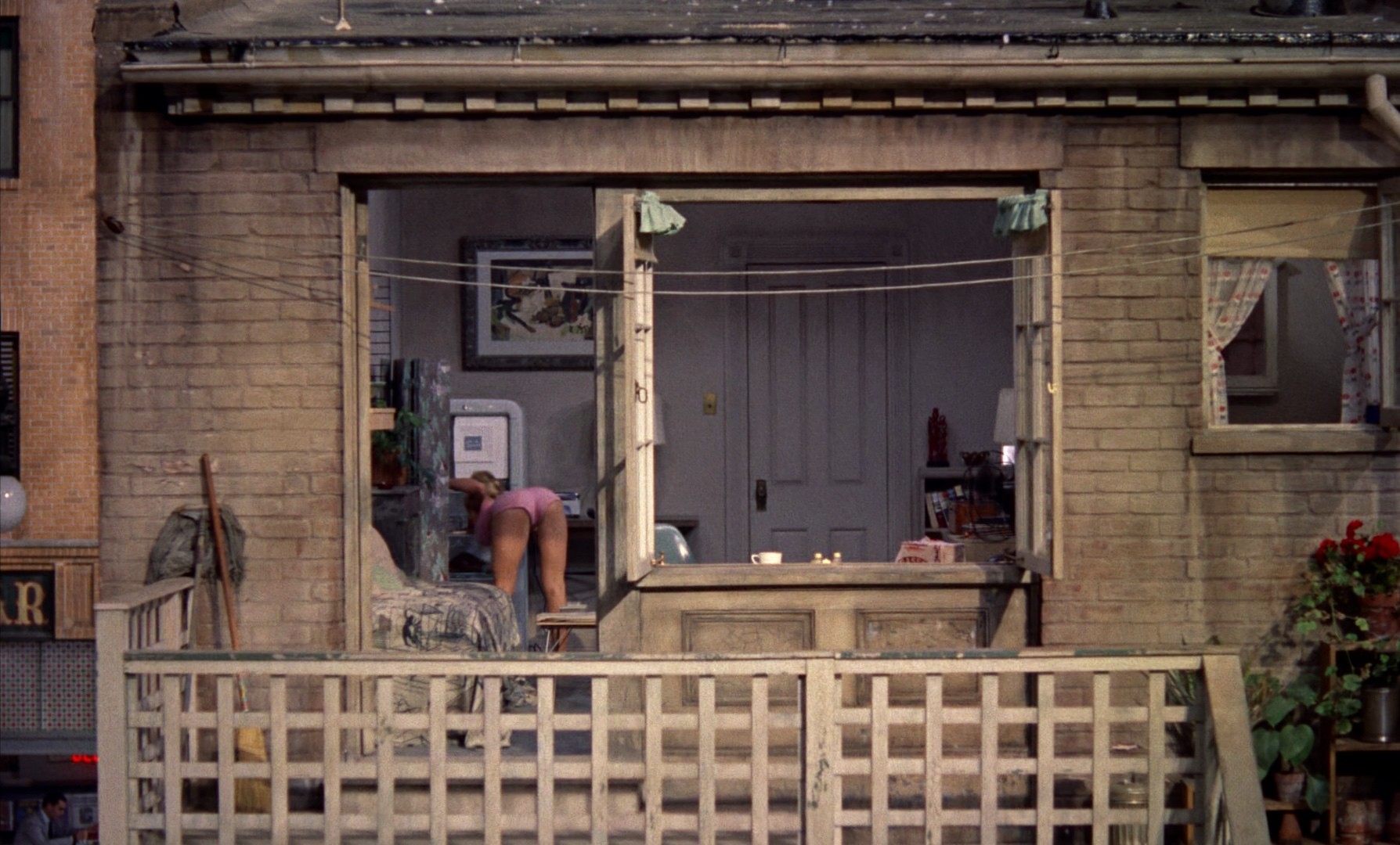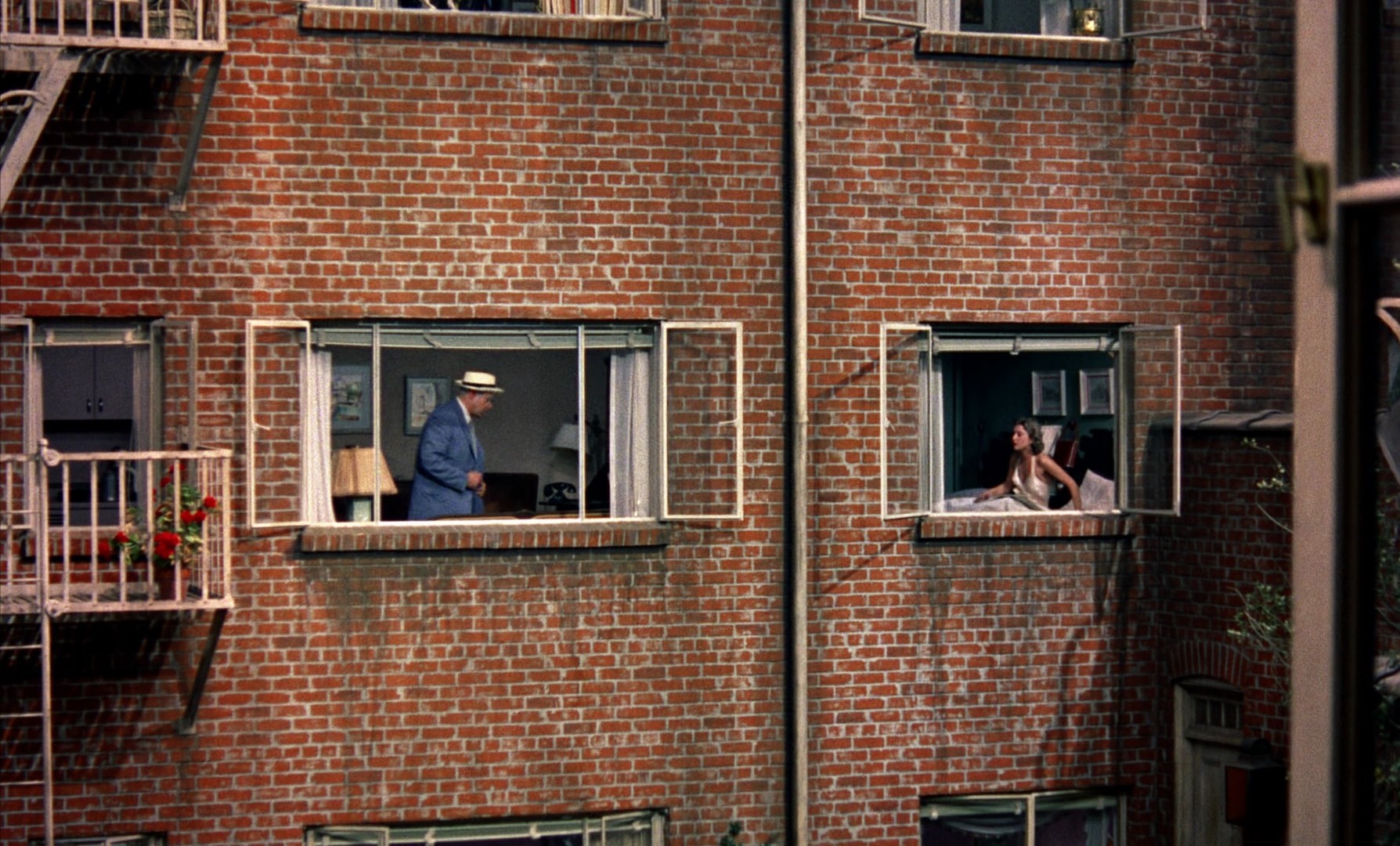Professional photographer Jeff Jefferies is wheelchair bound in his Greenwich Village apartment during an intense heat wave, and with his only visitors being his cynical elderly nurse and his much younger girlfriend, his only entertainment is spying on the neighbors through his rear window, which opens onto a courtyard surrounded by other apartments (this being a film from the 50s, they could not show the actual likely outcome, that he'd spend all his time savagely fucking Grace Kelly). The neigbors are an eccentric lot, including a professional dancer who practices in her apartment in very scant clothing, a songwriter who seems to be having some trouble, travelling salesman Lars Thorwald, who's constantly berated by his bed-ridden wife, and a perpetually lonely woman whose love life is full of constant failure. One night, Jeff hears a woman scream, and later that night, when a thunderstorm wakes him, he sees Thorwald repeatedly leaving the apartment carrying a heavy case, returning, and going out again. When Jeff notices the next day that Thorwald's wife is gone, and starts observing other suspicious behavior, he becomes convinced that Thorwald has murdered his wife, and obsesses over getting proof, eventually involving both his girlfriend and his nurse, as they all go to more and more extreme lengths to prove their suspicions.