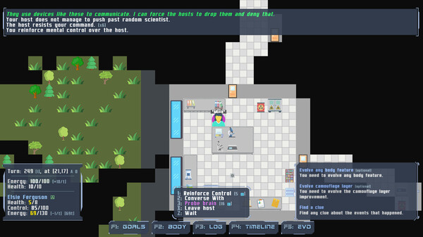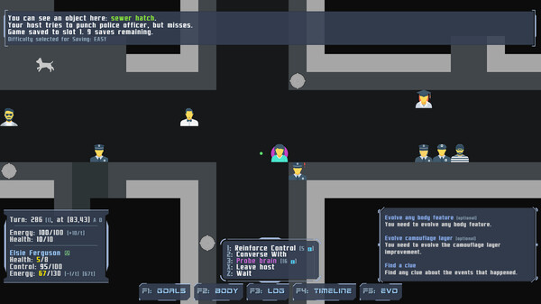 This is a roguelike open-world sandbox survival horror set in a modern city. Play as an --redacted-- parasite, possess human hosts, exploit and evolve them to help you survive in a hostile world, all to find out your one true purpose.