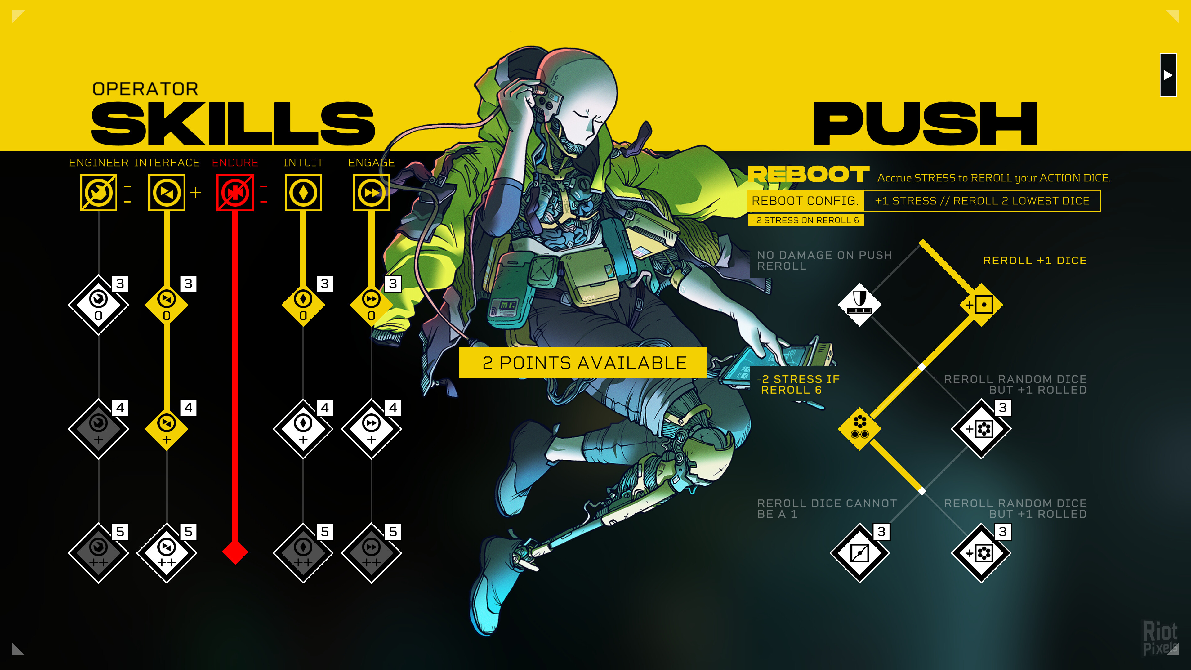 - PUSH YOUR LUCK - Each character class now has a unique “Push” ability, upgradable and customisable, that can help you turn the tide of a difficult job or send you into a dangerous spiral depending on how and when you choose to use it. Reroll your dice to change your fate, or focus a single die to bet everything on a big success. Each class offers different tactical possibilities.