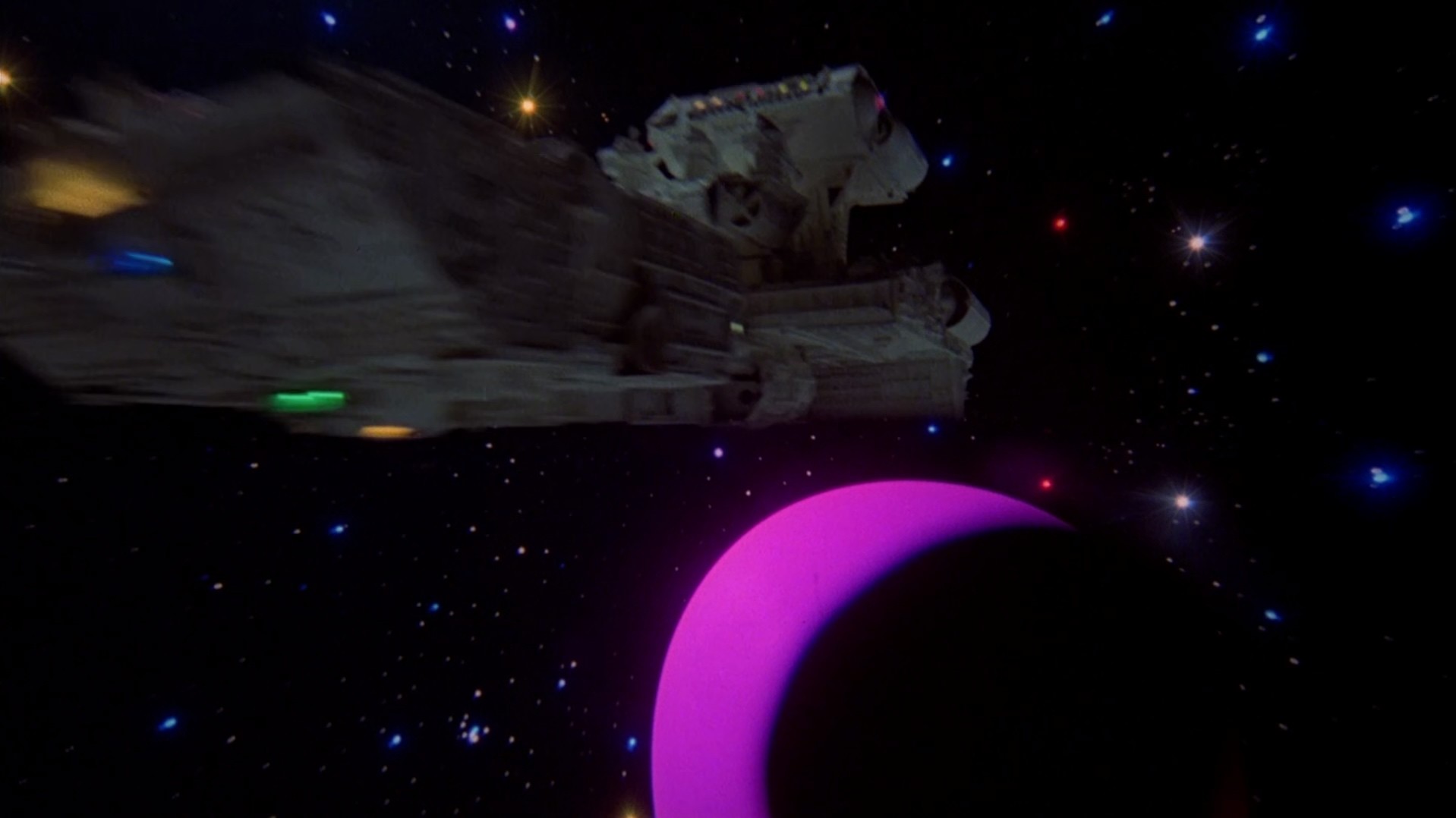 Starcrash (1978), directed by Luigi Cozzi, Shout! Factory remaster, encoded in 10 bit HEVC with AAC sound, including 5.1 remaster, two commentary tracks, and MST3k riff commentary with Jonah Heston, Crow T. Robot, and Tom Servo.