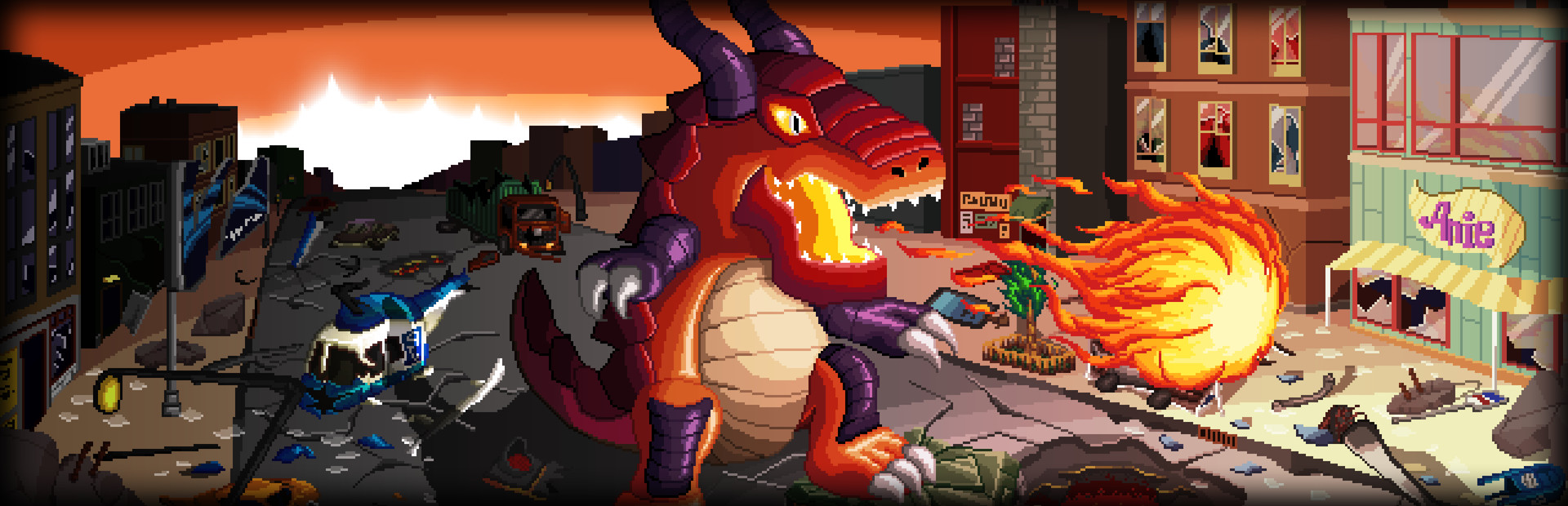 Become a customizable giant monster with manifold skills in Gigapocalypse, inspired by classical Kaijū movies such as “Godzilla” and “King Kong” and the game classic “Rampage”.