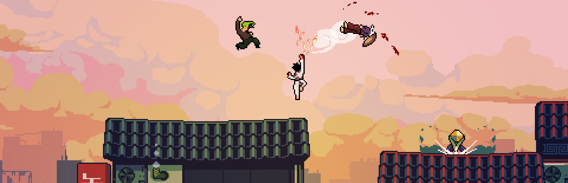 Roof Rage is a Martial Arts Platform Fighter featuring epic rooftop battles. Play with up to 8 players locally or 1vs1 online.
