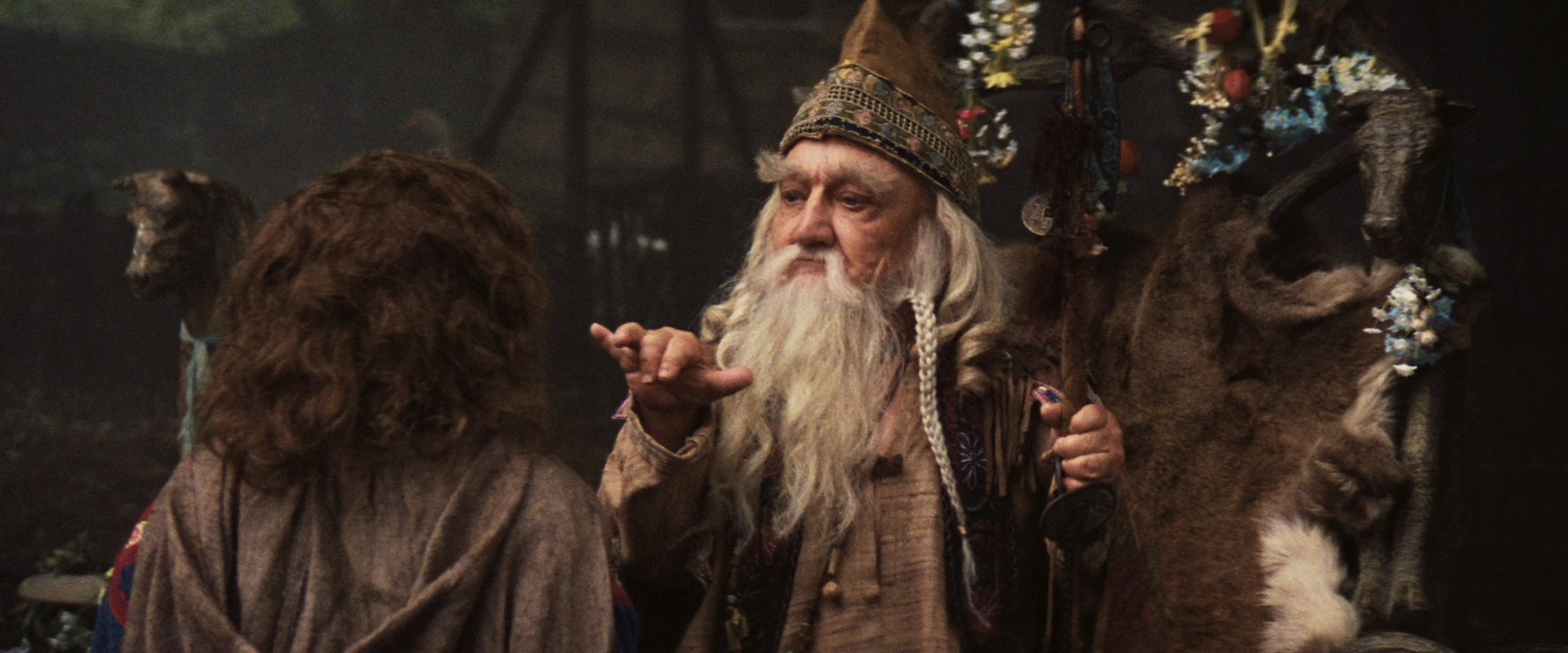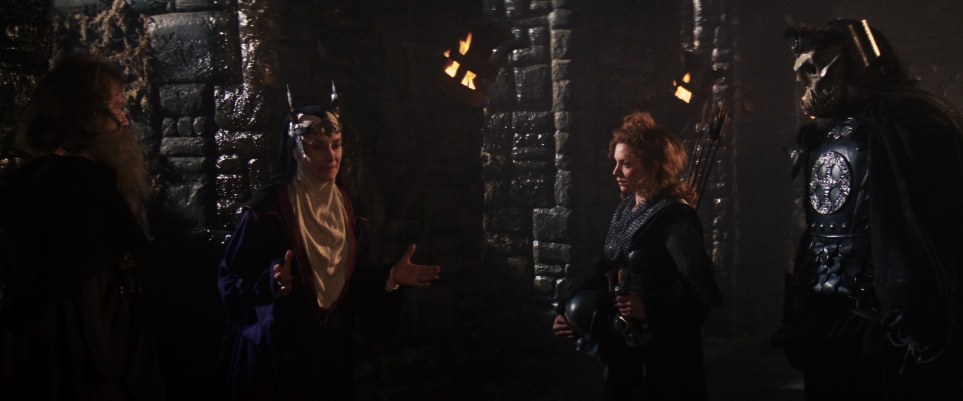 Evil queen slash sorceress Bavmorda hears of a prophecy that she will be overthrown by a child with a birthmark in the shape of a rune, and since Bavmorda has apparently read the Old Testament, she imprisons all the realm's pregnant women and has the newborns inspected for runes as soon as they pop out. This seemingly more humane approach doesn't serve her that well, though, because when the kid is born, the mother has the midwife smuggle it out. She's pursued by Bavmorda's monstrous hounds, but since she's also read the Bible, she sets the baby adrift on a river before becoming hellhound chow. Bavmorda, fed up with the soft touch, sends out an army led by General Kael and accompanied by her daughter Sorsha, to find the baby and bring it back. The baby, meanwhile, floats into the village of a bunch of little people who are preparing a festival, and is found by the children of the farmer Willow Ufgood, who wants nothing more than to be a sorcerer, who takes care of it, but the festival is attacked by the hellhounds, and the village council decides that Willow and a group of companions must take the baby back to be taken care of by a human family. They set out on their quest, soon coming across roguish swordsman Madmartigan, trapped in a gibbet, who's more than willing to take the baby in return for being released, but Willow isn't so sure. A passing army, led by Madmartigan's old friend Airk, is on the way to attack Bavmorda, and after witnessing this, Willow agrees to give Madmartigan the baby, and frees him. However, the baby's stolen by even smaller people, which gets them in touch with the Fairy Queen, and they're sent out to find the enchantress Fin Raziel, Willow receiving a magic wand as a gift. And so on, there are a lot of twists and turns, but suffice to say, good little people must face down big evil and somehow win.