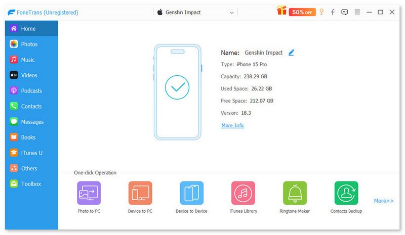 As the file transfer software for iOS devices, FoneTrans supports almost any type of data from iPhone, iPad and iPod. Whether you want to sync photos from an old iPhone to computer, migrate contacts from an old iPhone to new iPhone, or just backup iMessages from iPad to computer, FoneTrans can do it well.