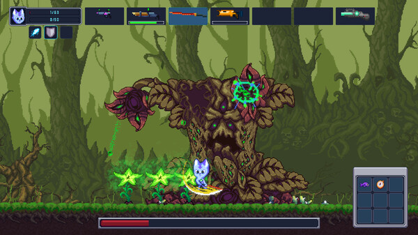 In this captivating Metroidvania game you will take on the role of a cute kitty cat on its mission to find the soul of Planet 42 to rescue the Earth. Fight enemies and bosses, solve puzzles and explore levels in this fascinating game.