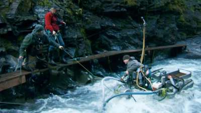 The location, which only recently became available, is surrounded by white water rapids, forcing the guys to dive into raging torrents. Despite the danger, Fred and Dustin are determined to make a fortune, no matter the risk.
