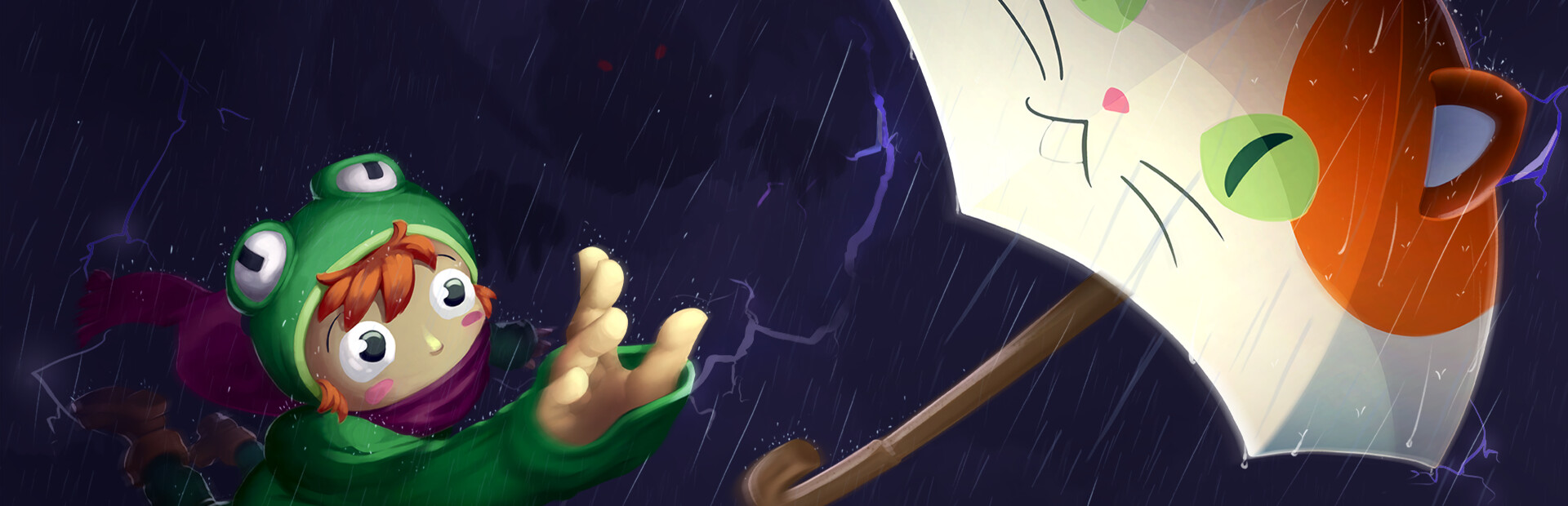 Devil's Drizzle is a 2D platformer that narrates the story of a kid in pursuit of his friend, an umbrella. Brave the storm and outrun the clutches of the demonic Pazuzu in this audacious effort to save your buddy.