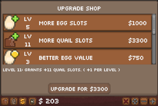 An idle desktop game about growing and collecting quails. Hatch them, grow them, collect their eggs and repeat!