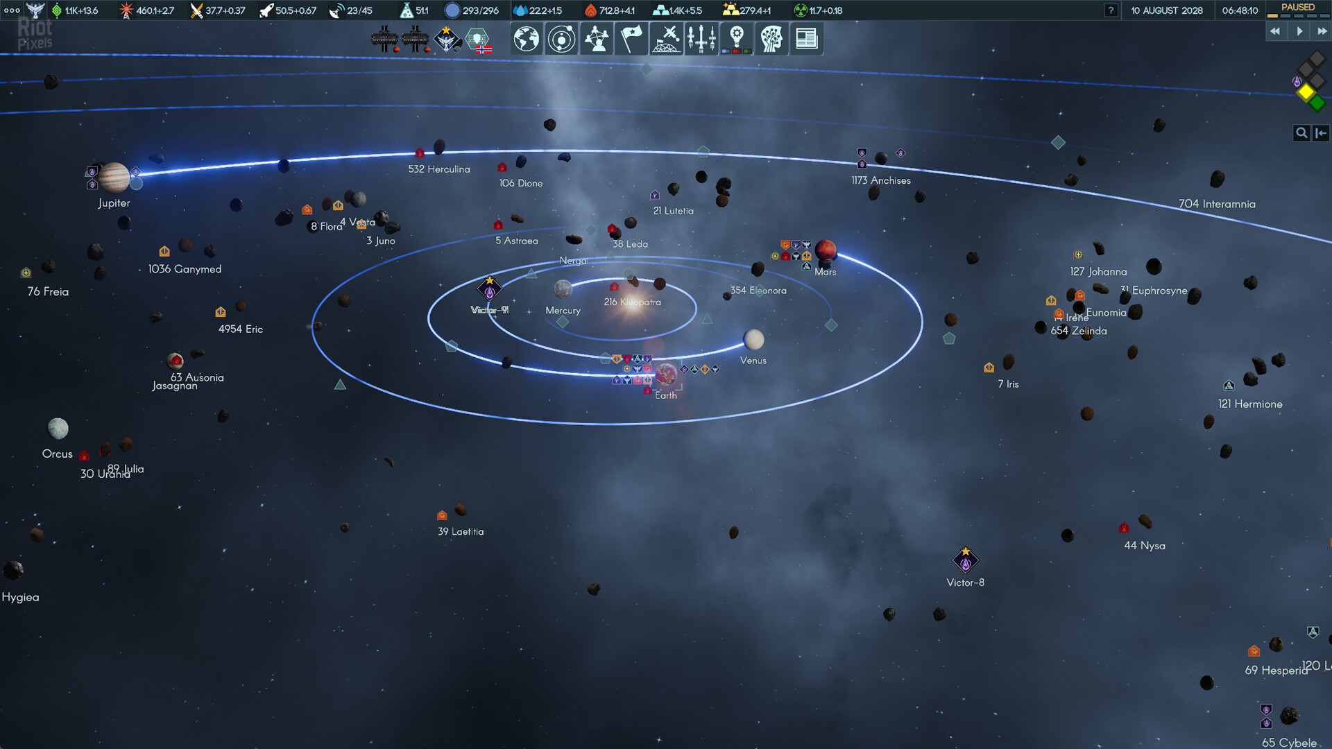 - EXPAND ACROSS A DYNAMIC SOLAR SYSTEM - Terra Invicta bridges the gap between our modern-day world and the vast interstellar empires of other space strategy games, asking you to take humanity's first steps in colonizing our Solar System, where over 300 asteroids, moons, and planets in constant motion create an ever-changing strategic map. Start your campaign in the modern day and build your capabilities from the ground up, or begin in the near-future and push into the final frontier from the very start – build space stations and planetary bases, quickly gain control of the inner Solar System, and prepare for the existential threat growing at the far reaches of the system. Take your faction beyond the confines of Earth, building space stations to act as shipyards and fuel depots, constructing mining stations to acquire advanced resources, and establishing bases to serve as research or construction facilities. Terra Invicta zooms into the strategic geography of the Solar System, presenting space not as a series of isolated stars that you order units to move to and from, but rather a rich and varied landscape of asteroids, moons, dwarf planets, gas giants, and other celestial bodies creating texture and tactical opportunities at every turn. The expansive map is constantly shifting as celestial bodies orbit the Sun. This means your space stations and forward operating bases are constantly moving as well, forcing you to plan accordingly and adapt to the evolving circumstances – your colonies among the Jovian moons could find that a once-distant alien military outpost or Initiative privateering base has suddenly become a close neighbor.