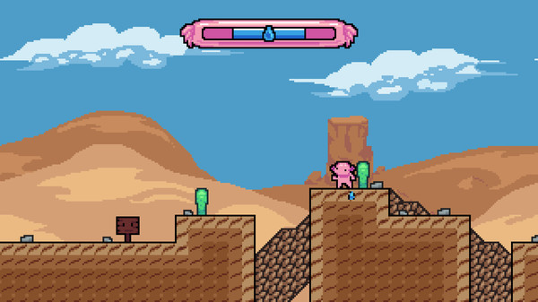 Axolotl is Dry is a precision platforming game where you play as a little axolotl taken from his home. You'll need to jump, dash and slide your way through the harsh desert before you sweat yourself dry. Help the axolotl get to his home!