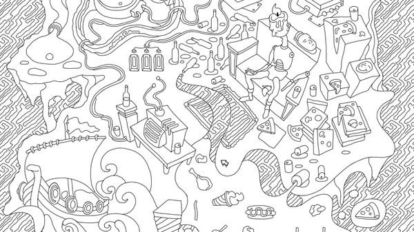 Hidden object game in a surreal style. Black and white hand-drawn style. Animated puzzles. Mind blown.