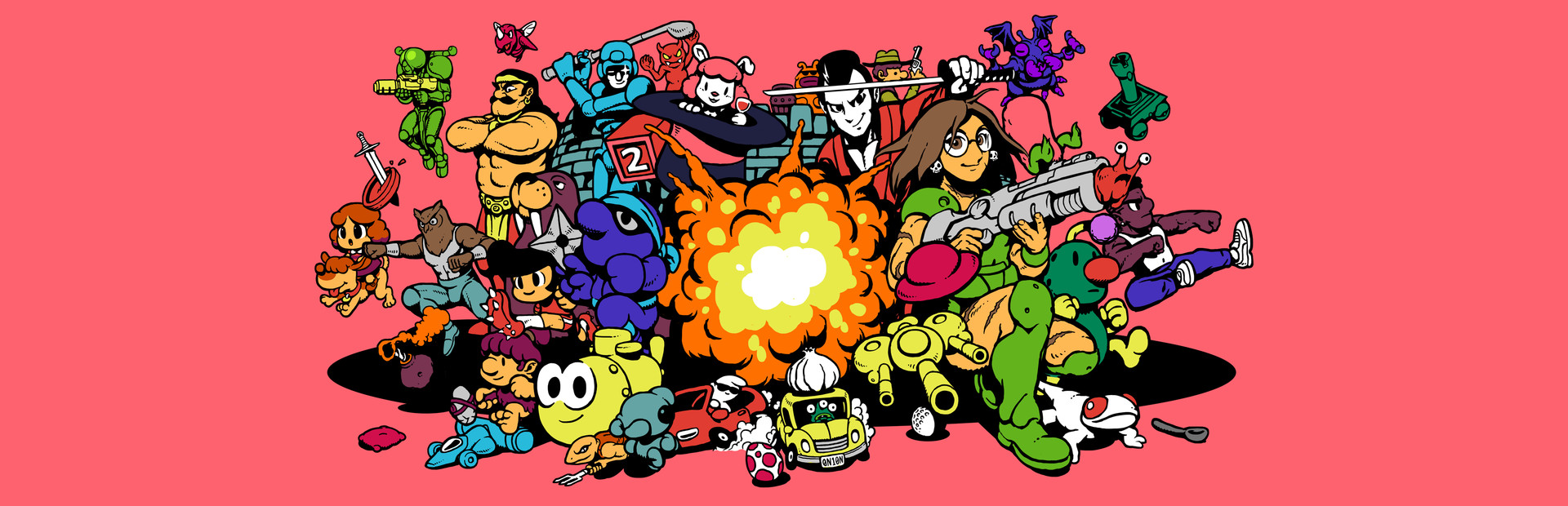 UFO 50 is a collection of 50 single and multiplayer games that span a variety of genres, from platformers and shoot 'em ups to puzzle games, roguelites, and RPGs. Our goal is to combine a familiar 8-bit aesthetic with new ideas and modern game design.