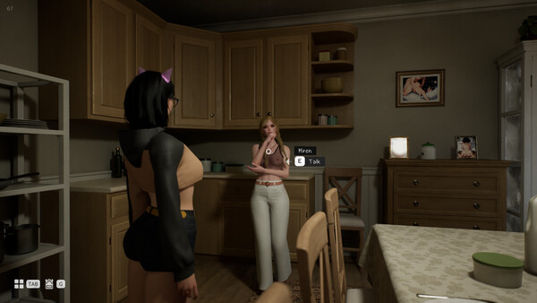 Adult 3D interactive exploration game where you control Lumen, a femboy living in a shared house. Explore the environment, interact with objects and housemates, build intimacy, and unlock animated scenes in a stylized, mature-themed experience.