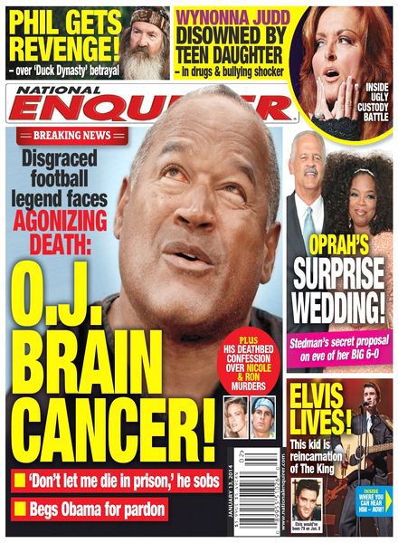 National Enquirer - Disgraced Football Legends Face + O.J Brain Cancer (13 January 2014)