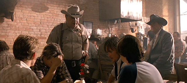 Travis gets out of the truck to learn more and is struck by a beam of light from