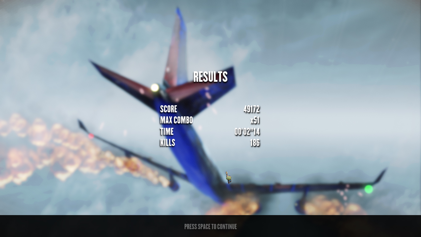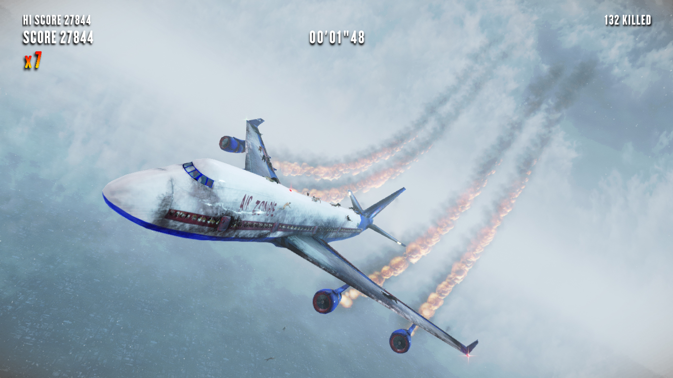 Use the plane as a weapon and fight to stay in the air against hordes of zombies at 30,000ft. As captain in control players must maintain the health of vital key parts such as the engines and rudder. Beat your stats or a friend's in score, combos, time and kills and fly to the top in the leaderboards.